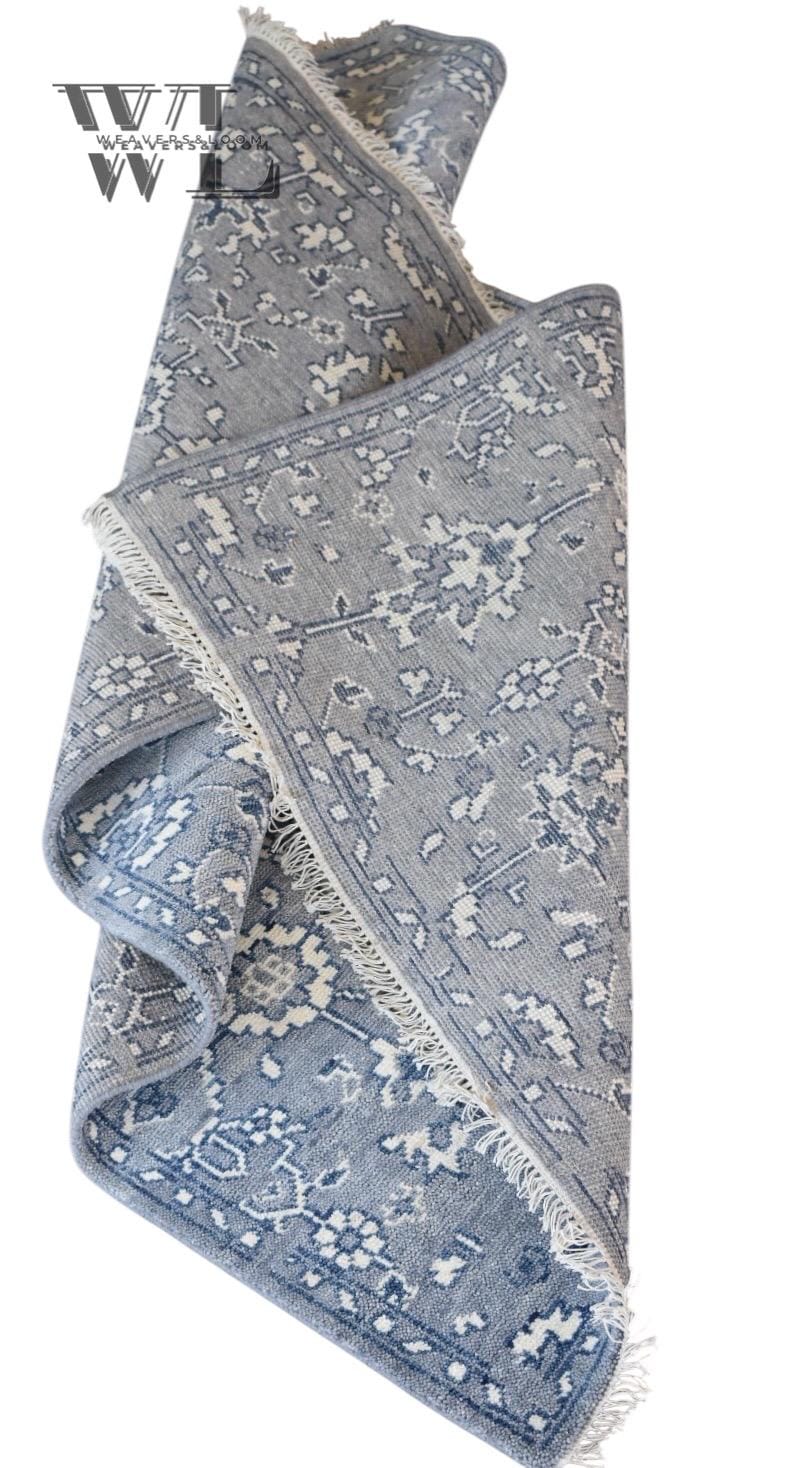 9x12 10x14 Modern Oushak rug Grey, Blue Turkish knot rug Hand-knotted Vintage Antique Oushak Wool Area Rug for Living Room,Dining room rug