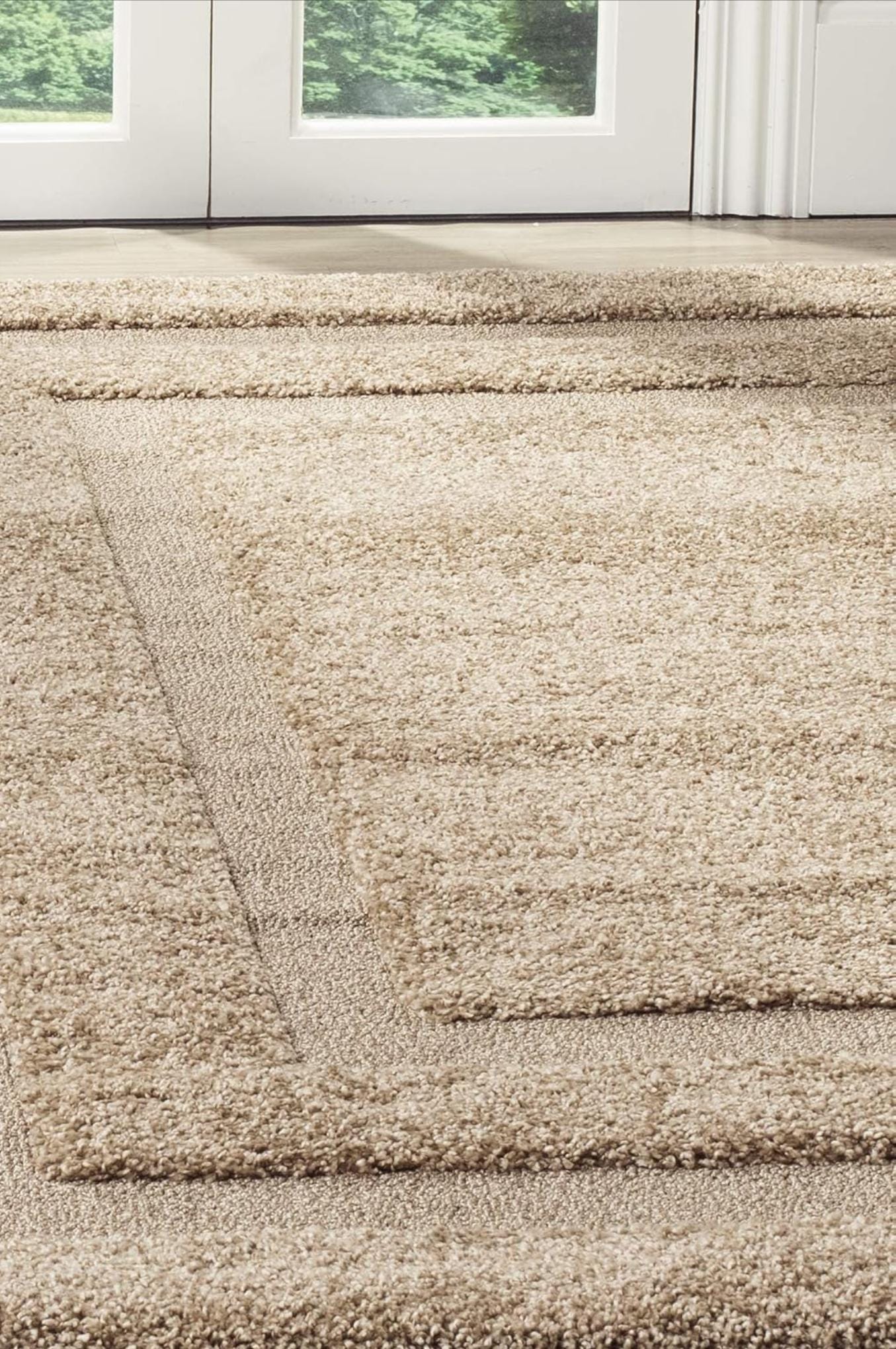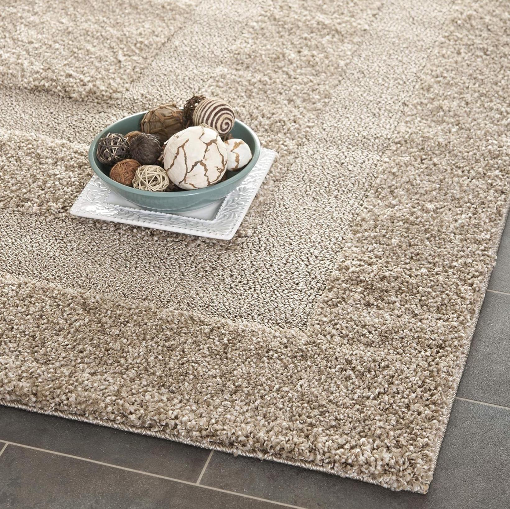 Beige Geometric Shag Area Rug - Soft, Modern High-Pile Carpet for Living Room or Bedroom, Fluffy Rug, shaggy carpet custom made, custom size