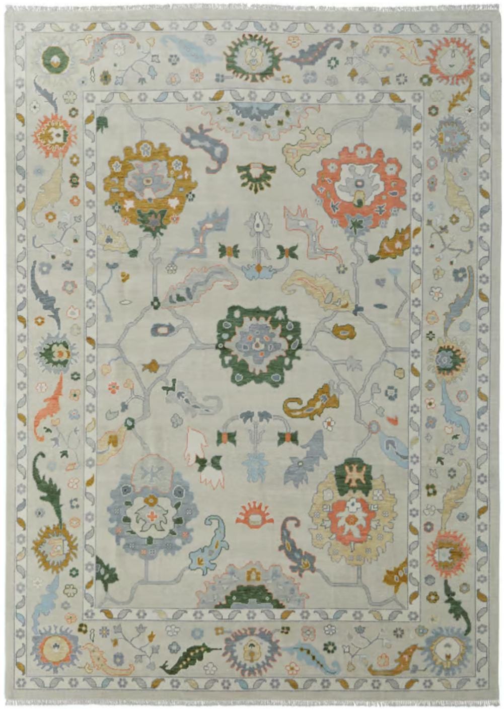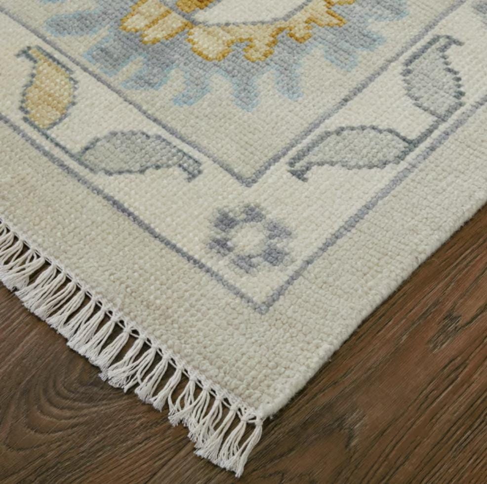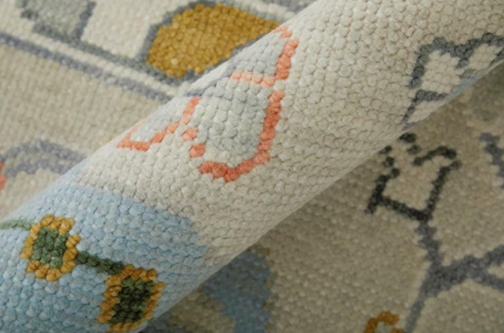 Ivory-Pastel Hand Knotted Rug, Modern Oushak Wool Area Rug for Bedroom,Living room, dining area, Pastel Oushak Rug,Handmade Rug,Trending Rug