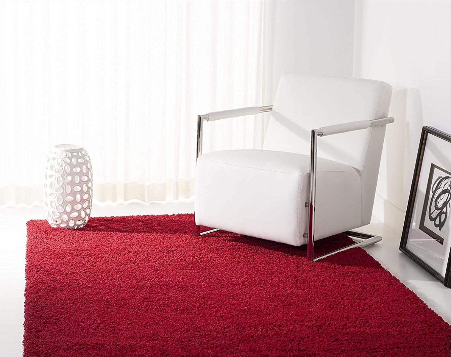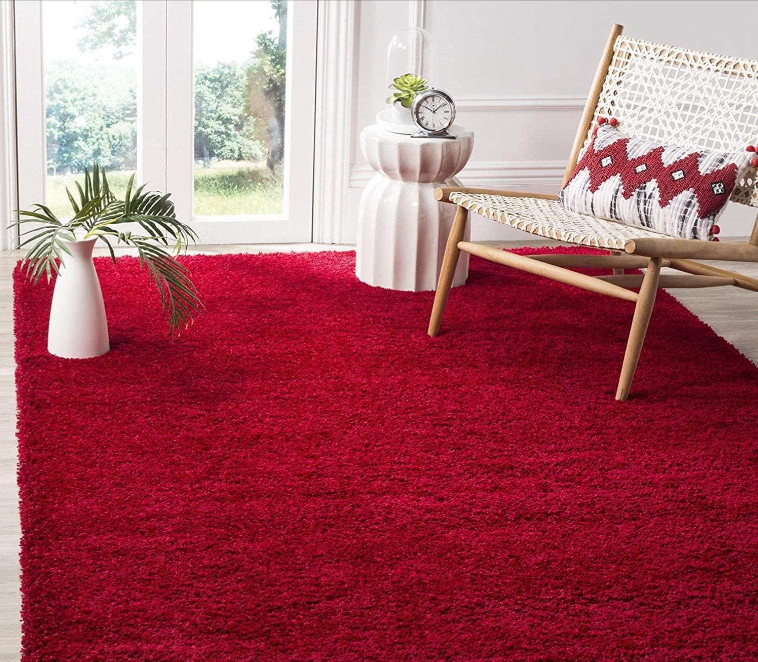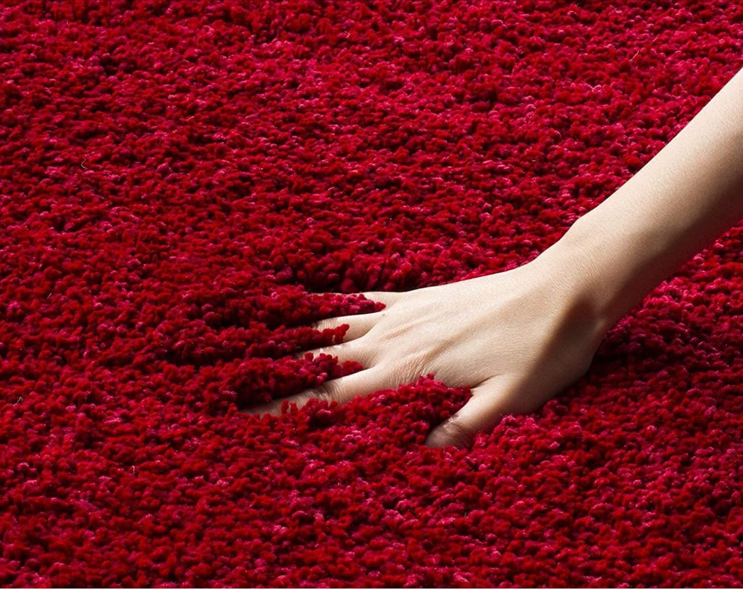 Plush Red Shag Area Rug - Soft Modern Decor for Living Room or Bedroom - Luxurious High-Pile Design