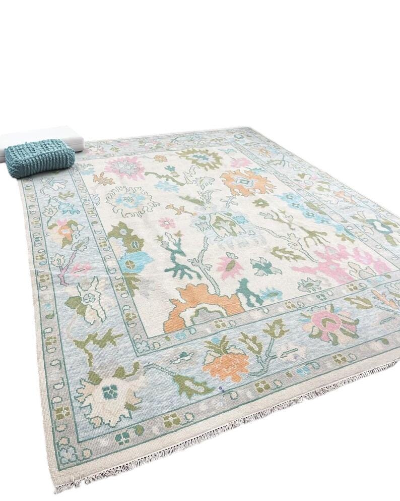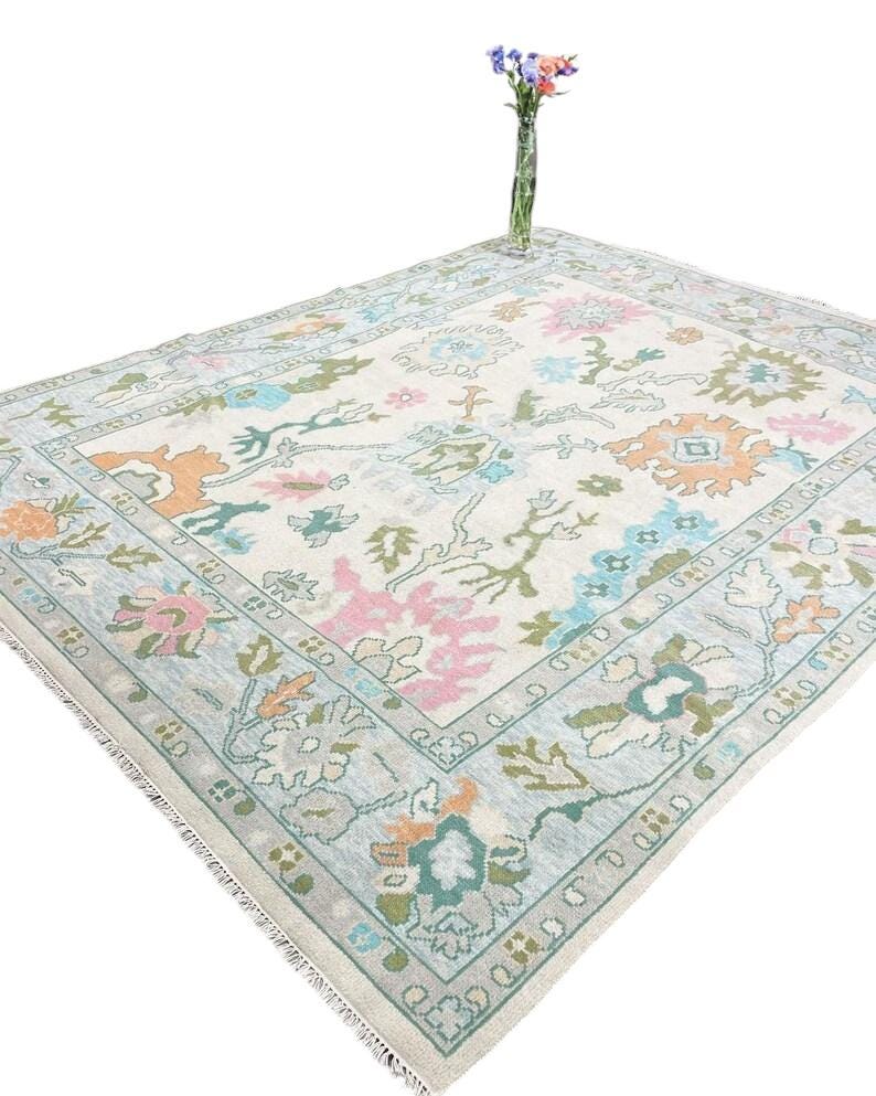 Modern Hand Knotted Oushak Rug for Living Room,Dining Room,Office,bedroom,Hand Knotted Wool Area Rugs,9x12,10x14 Handmade Turkish Rugs