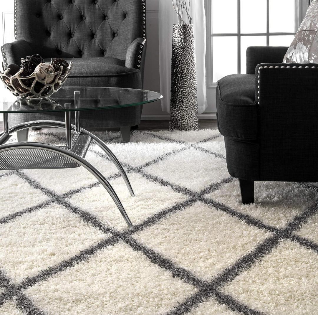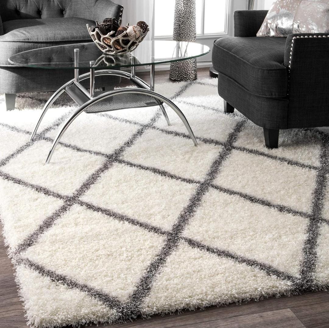 Microfiber Silk Touch 10x14 Shag Rug - GreyIvory 3D Edge Collection for Living Room