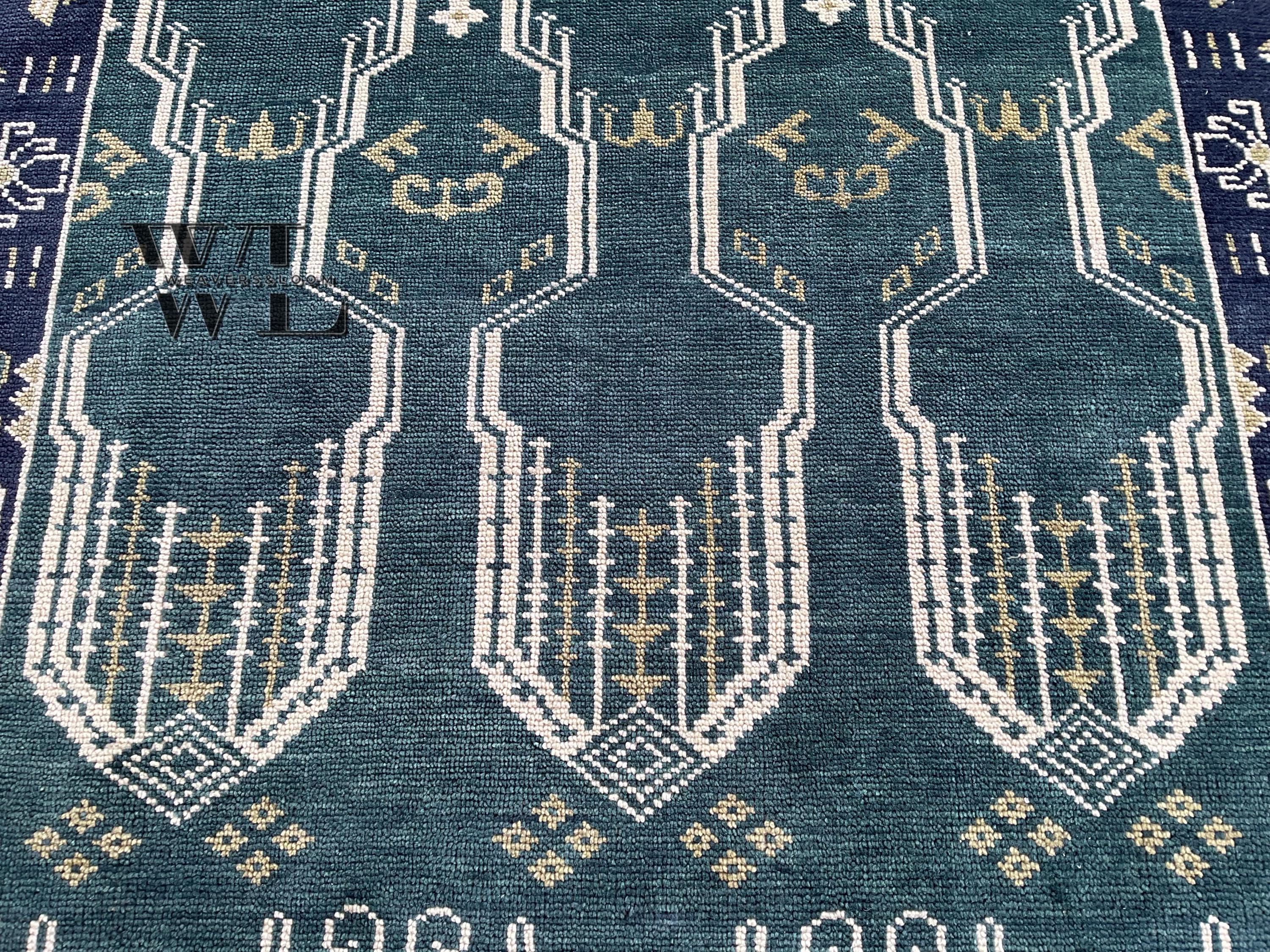 This rug in My Store is Made up of wool this exquisite hand-knotted rug is Low Pile Rug Which Is durable with a gentle feel. The defining details of this rug are sure to make it a conversation piece and an icon of your household. It is a joy to step out of bed in the morning onto these rugs and is also perfect for rolling out in a calming nursery or a delightful playroom.