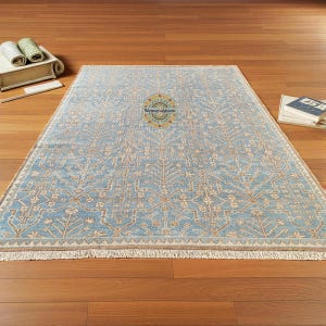 Eastview Hand Knotted Wool Rug, Beige Blue Oushak Rug,Wool Area Rug for living room,bedroom,Dining area,Area Rug,Trending Handmade Area Rug