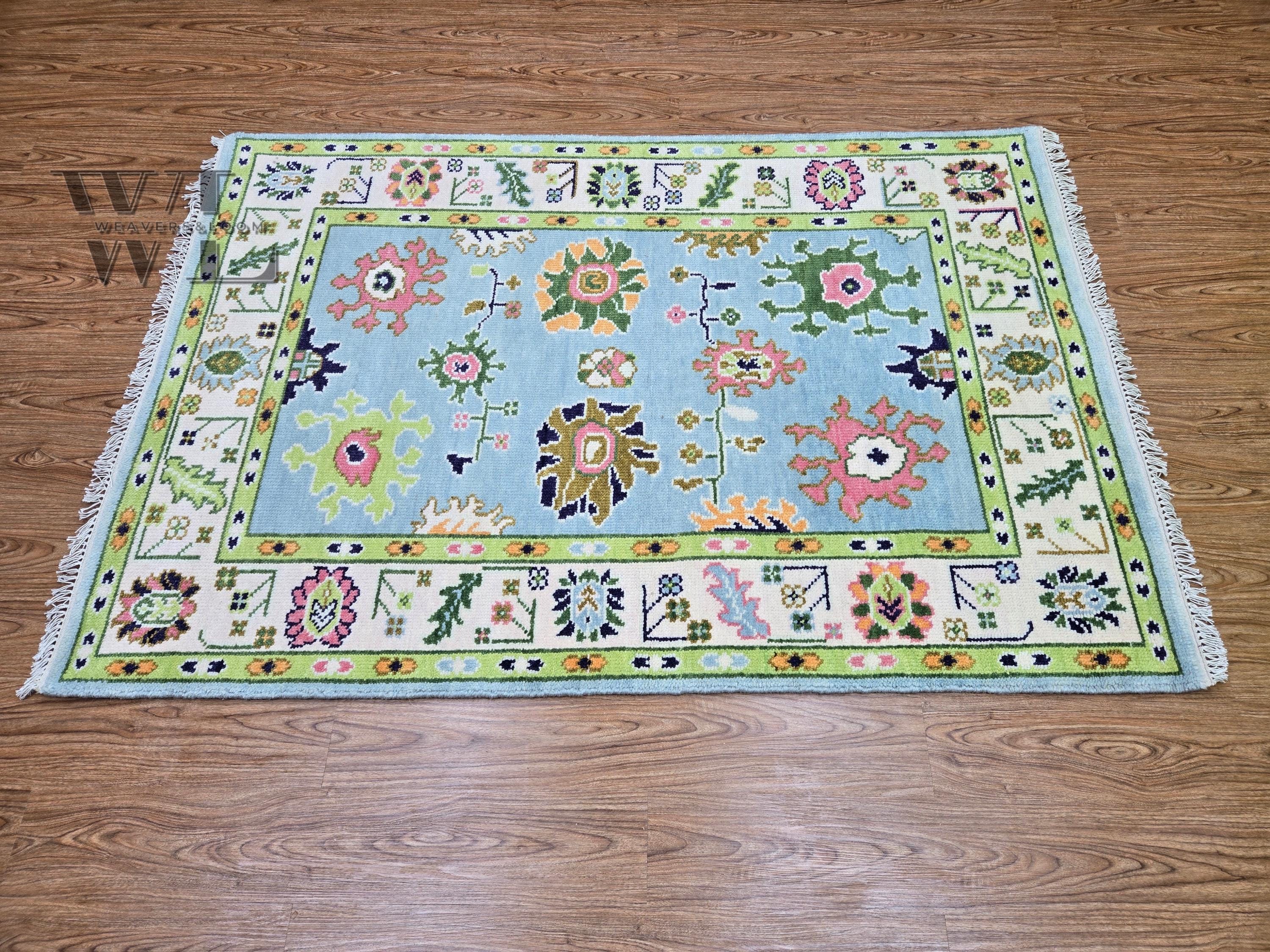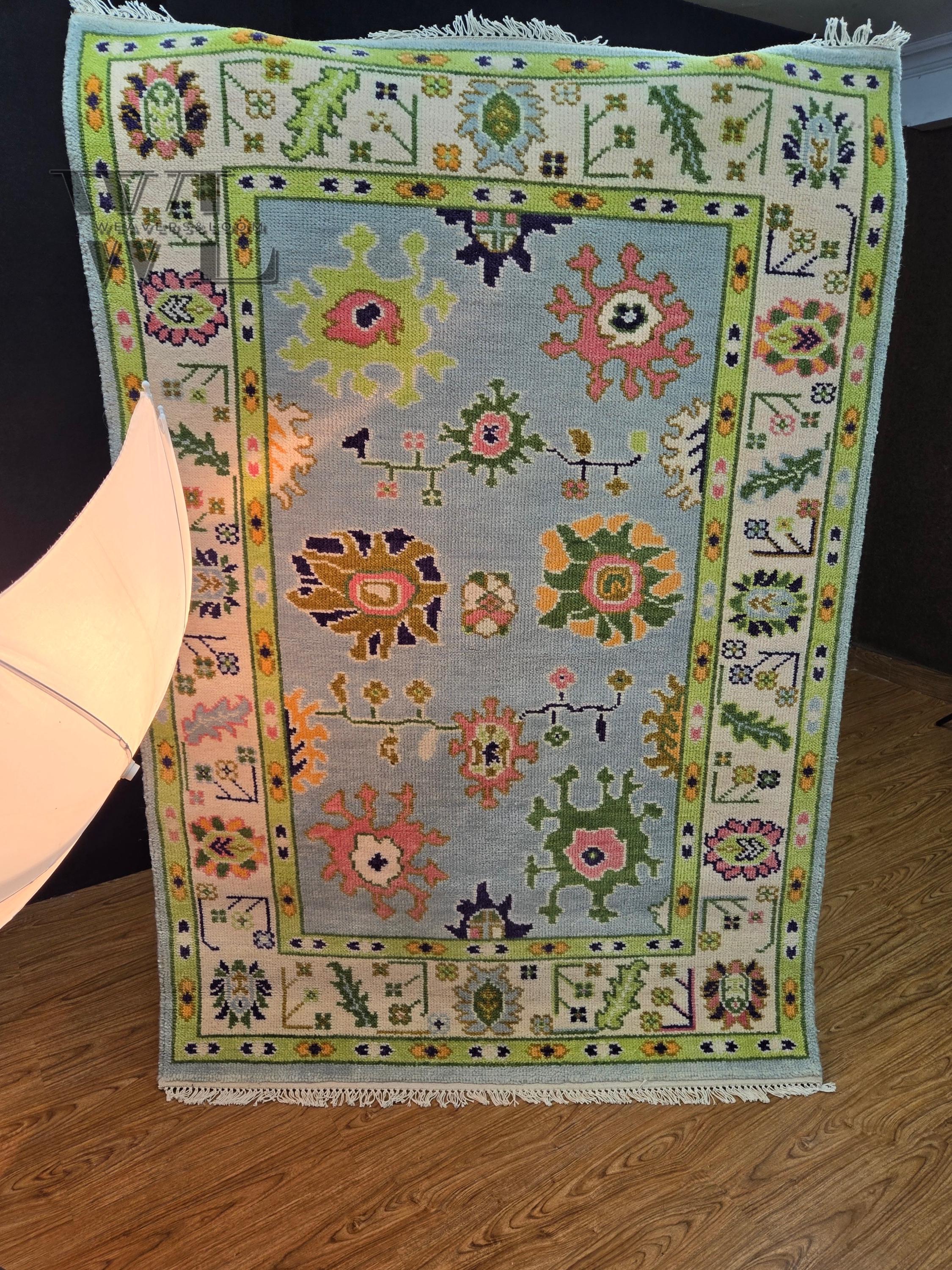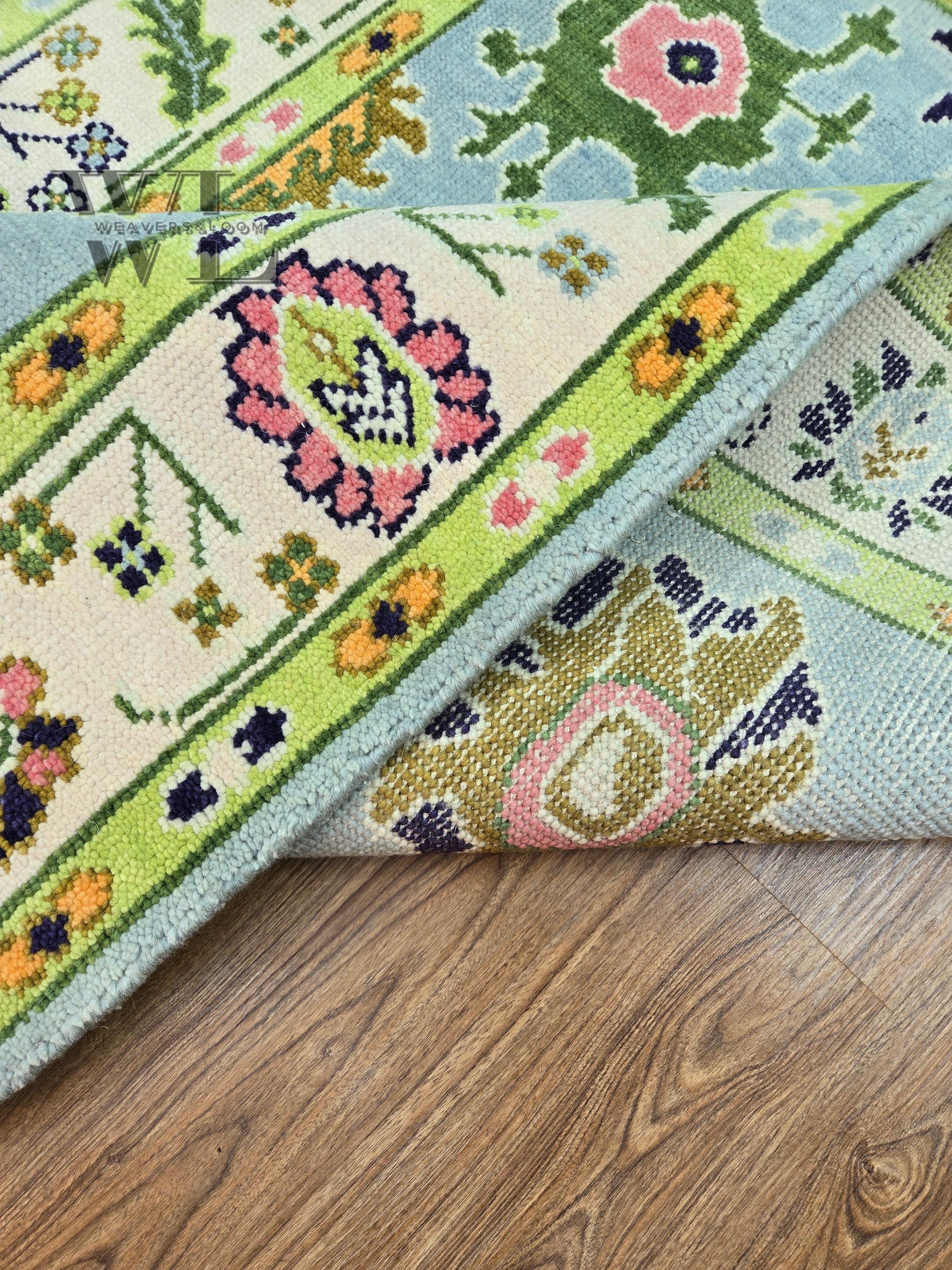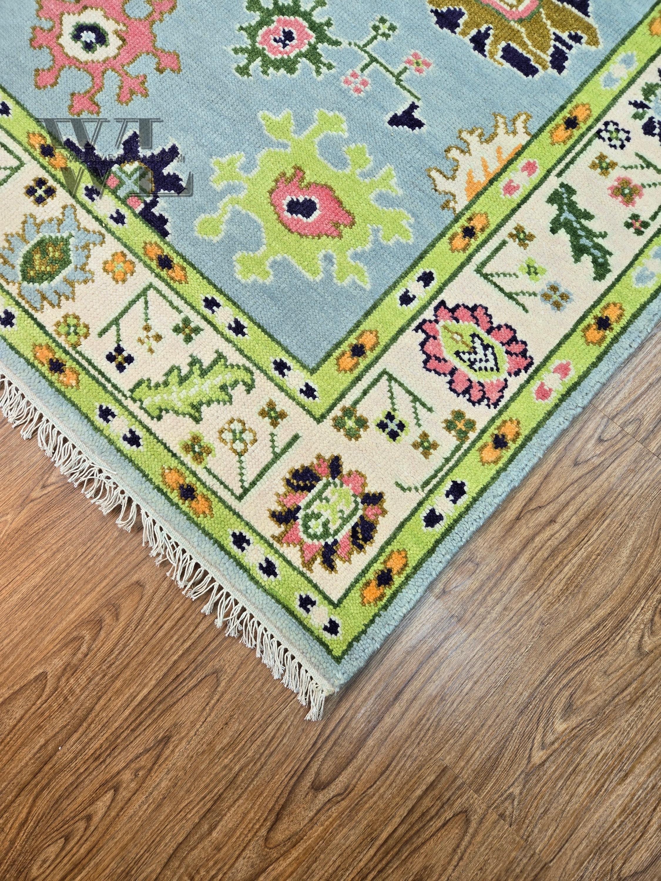 9x12, 10x14 Blue Hand knotted Oushak rug Handmade Wool Area Rug for Bedroom,Living room,Dining area,Pastel Oushak, Handmade Rug,Turkish Rug