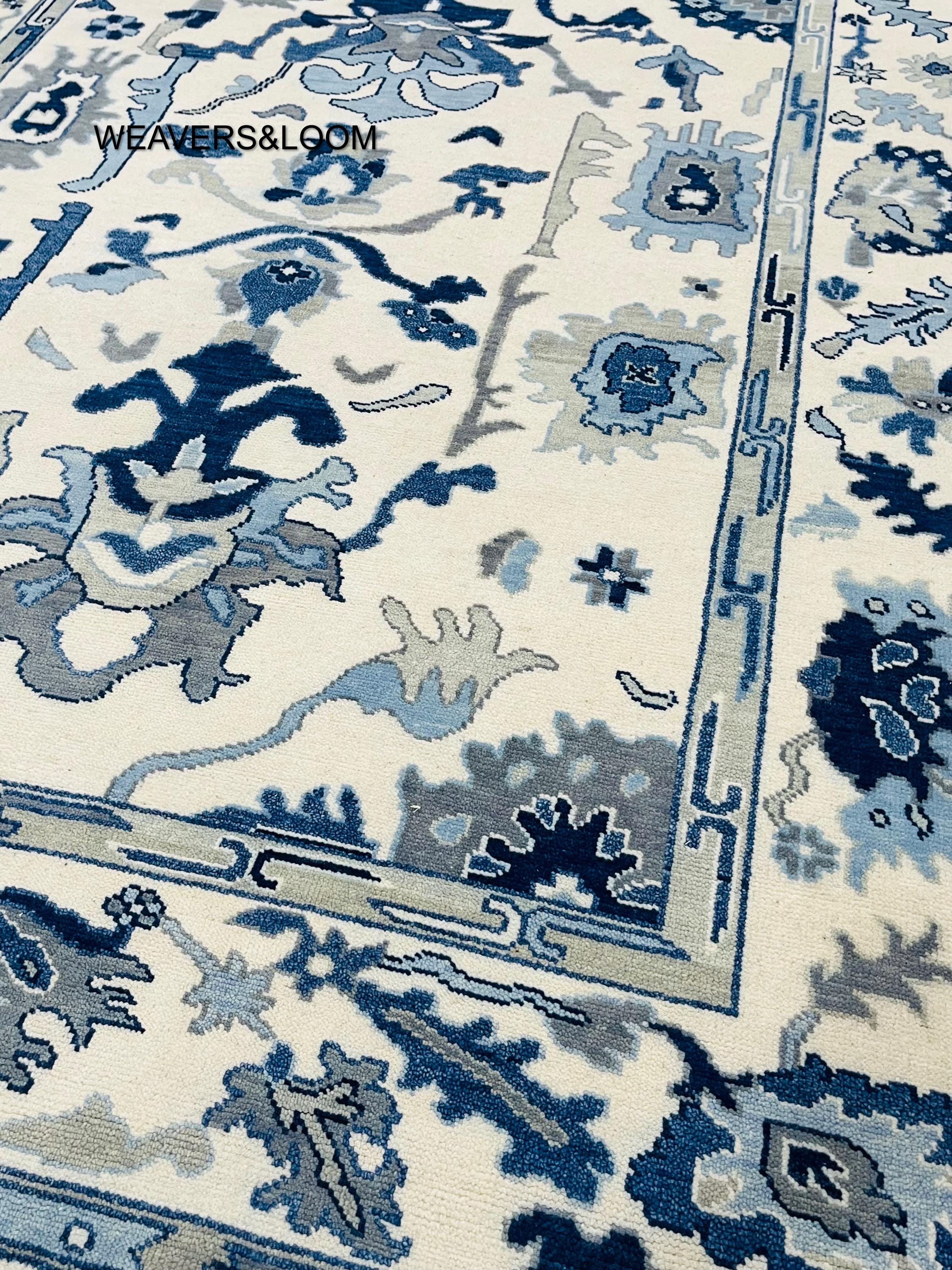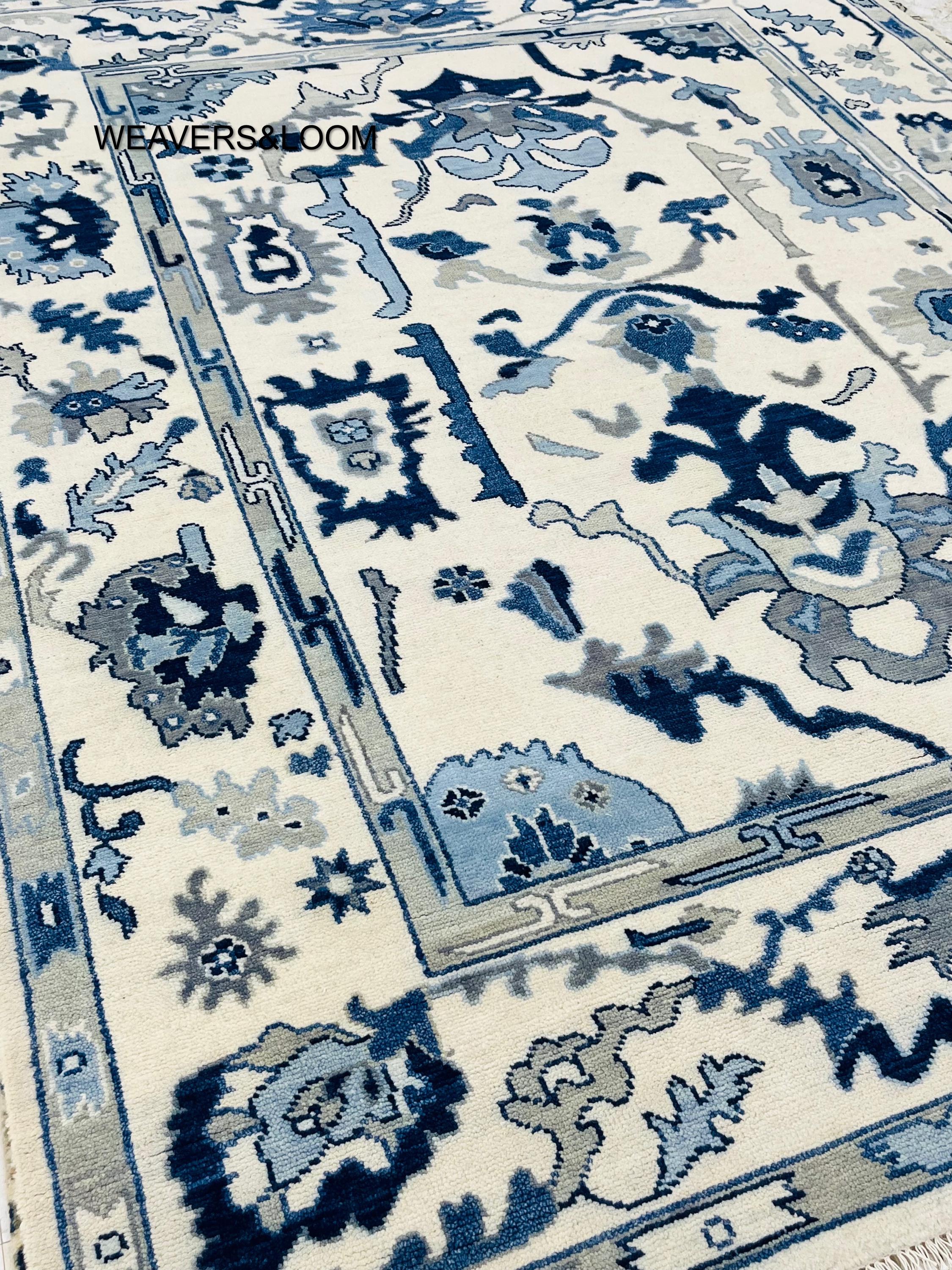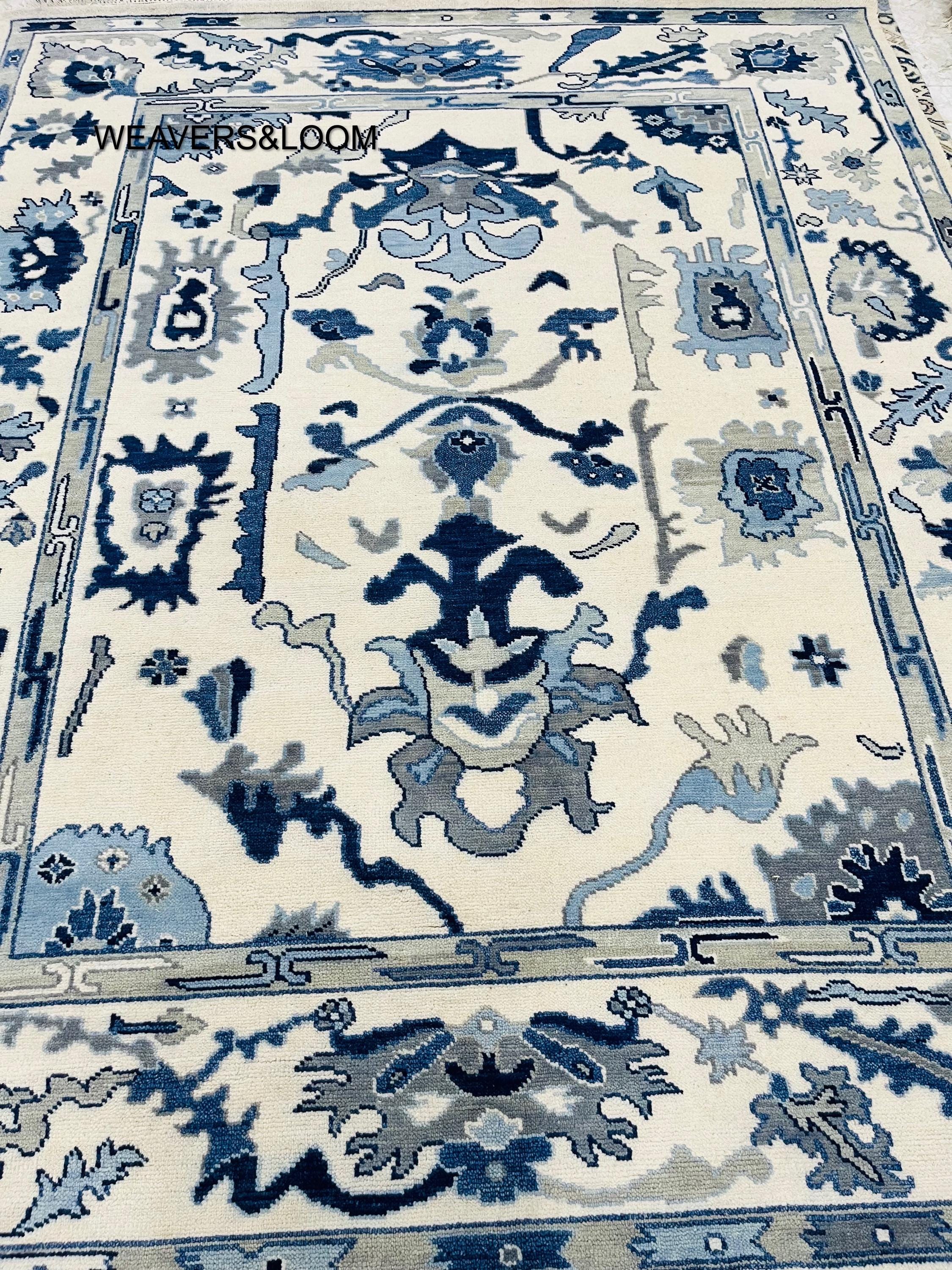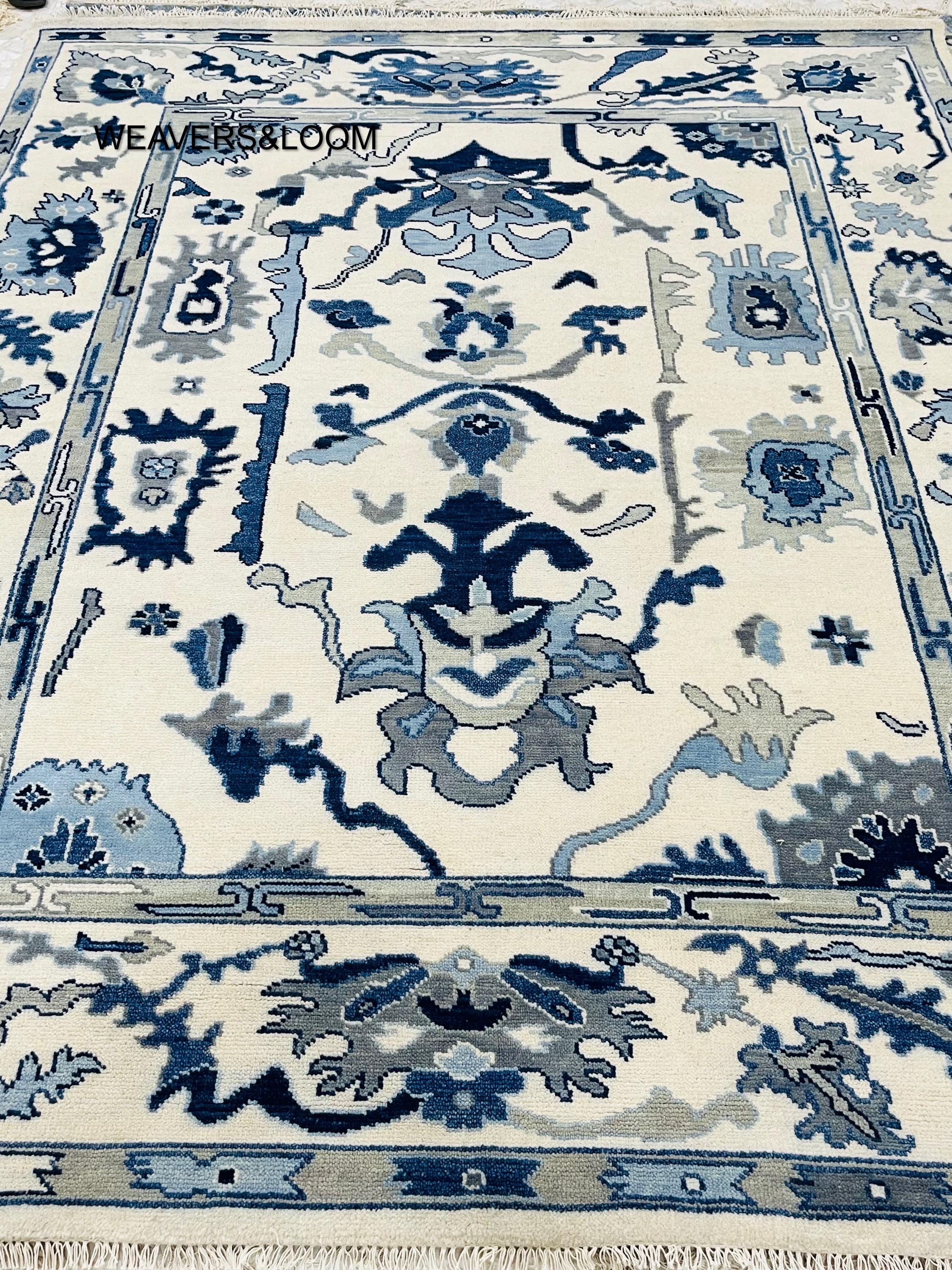 Blue Area Rug, Hand Knotted Modern Oushak Rug, Wool Area Rug for Living room, Dining area, Pastel Oushak Rug, Handmade Rug, Blue Oushak Rug