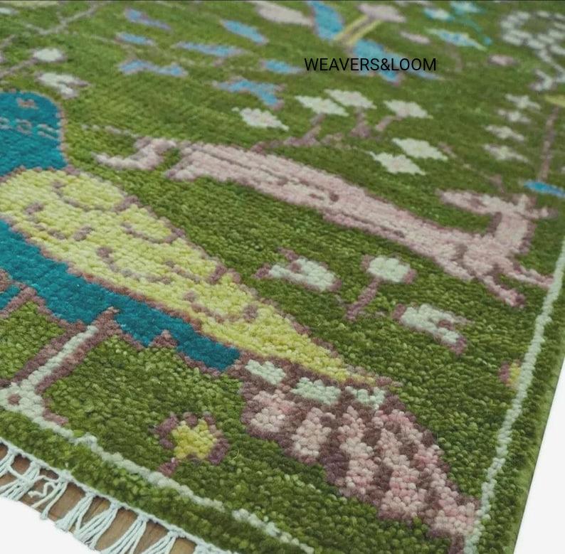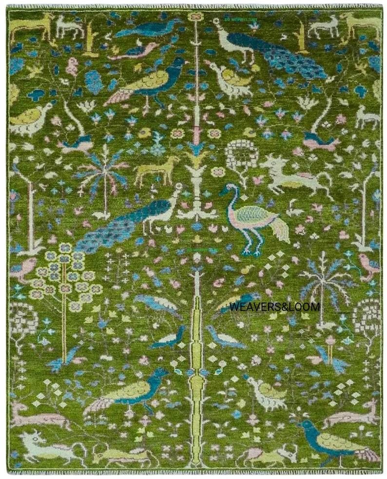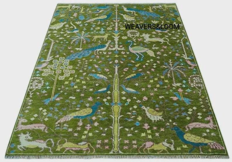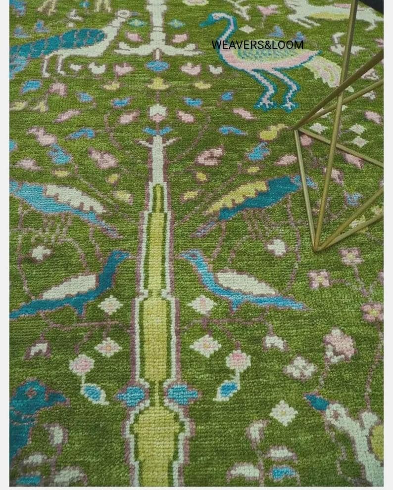 Exquisite Green Tree Of Life Hand Knotted Oushak Rug for Living Room, Dining Room,Hand Knotted Wool Area Rugs 8x10,9x12,10x14 Turkish Oushak