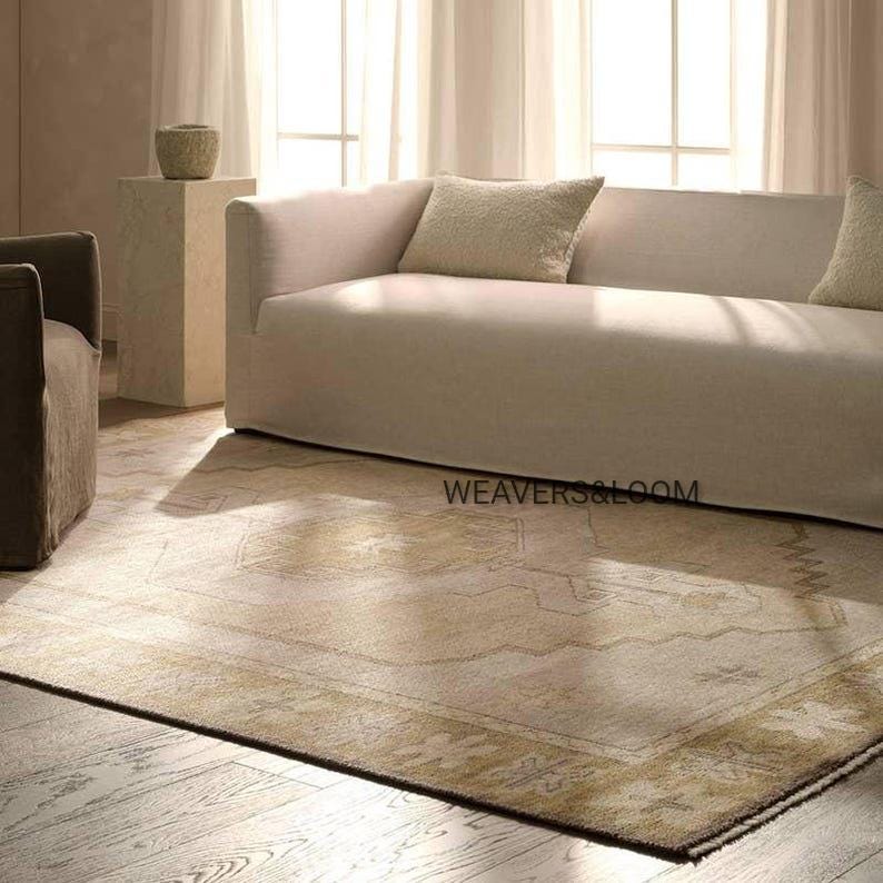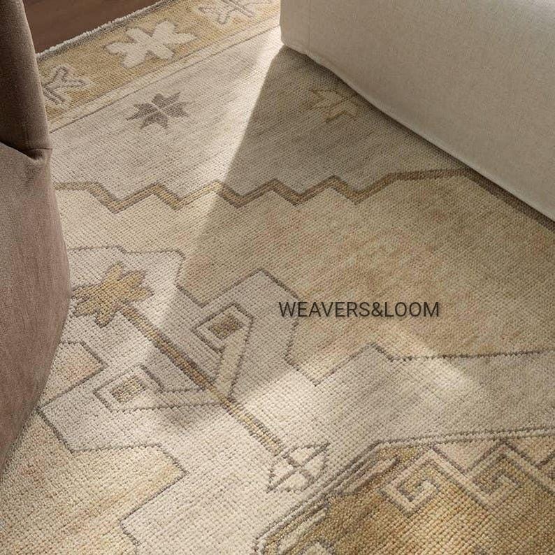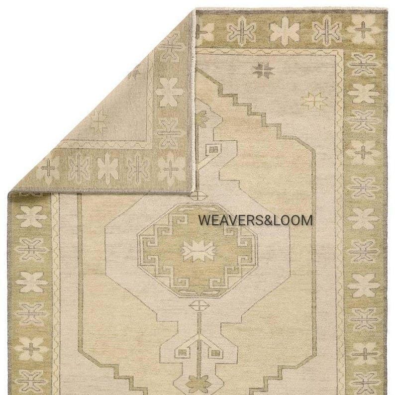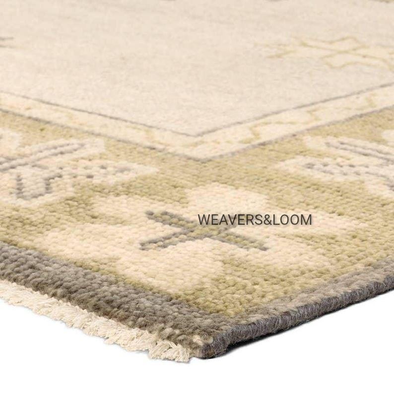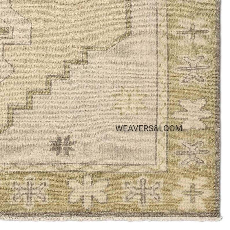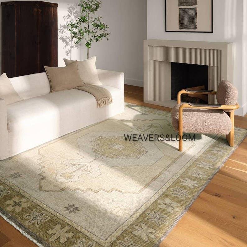 Vintage Look Hand Knotted Area Rug, Hand Knotted Oushak Rug in 8x10, 9x12, 10x14 for bedroom, Living Room, Dining Area,Large Beige Green Rug