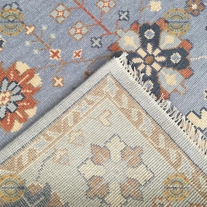 This rug in My Store is Made up of wool this exquisite hand-knotted rug is Low Pile Rug Which Is durable with a gentle feel. The defining details of this rug are sure to make it a conversation piece and an icon of your household. It is a joy to step out of bed in the morning onto these rugs and is also perfect for rolling out in a calming nursery or a delightful playroom.