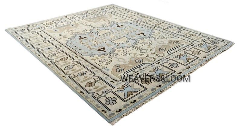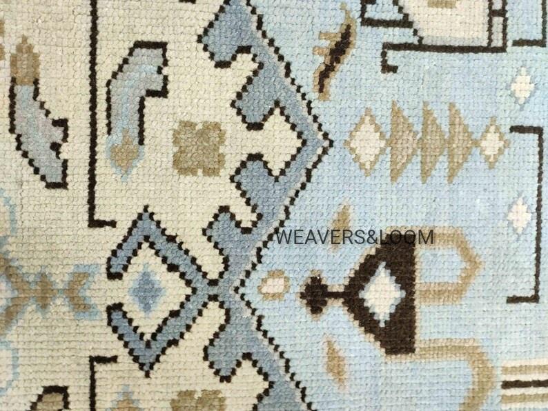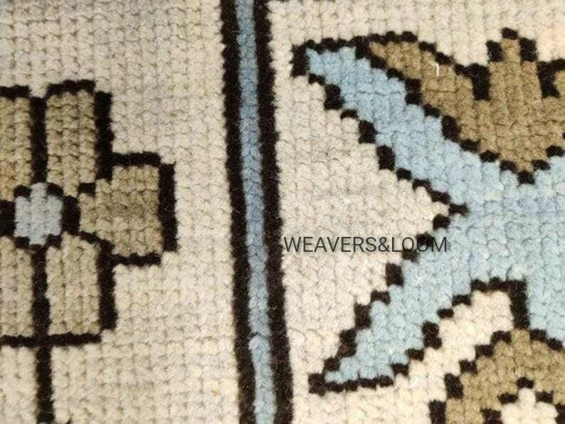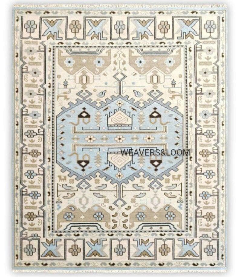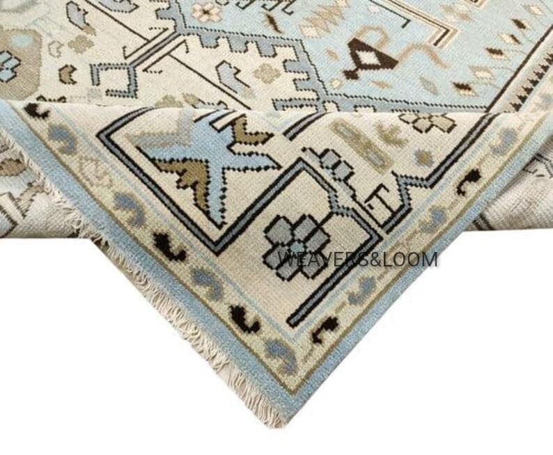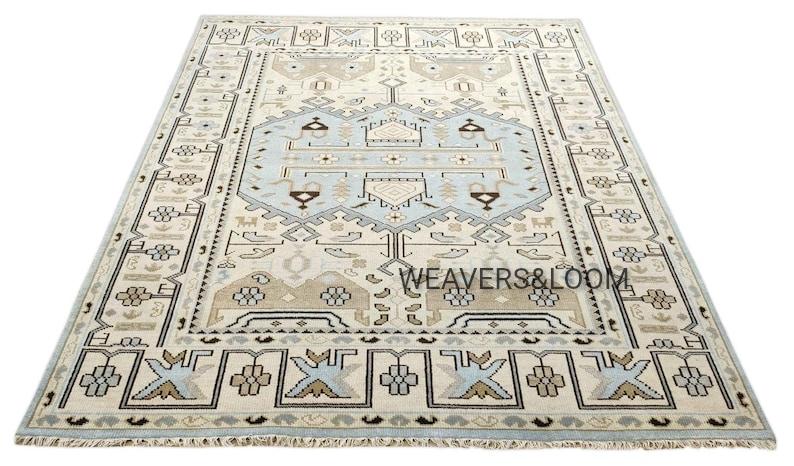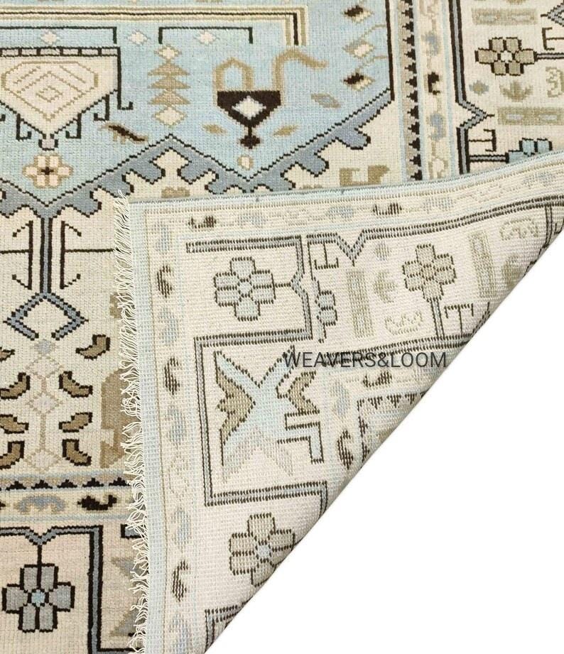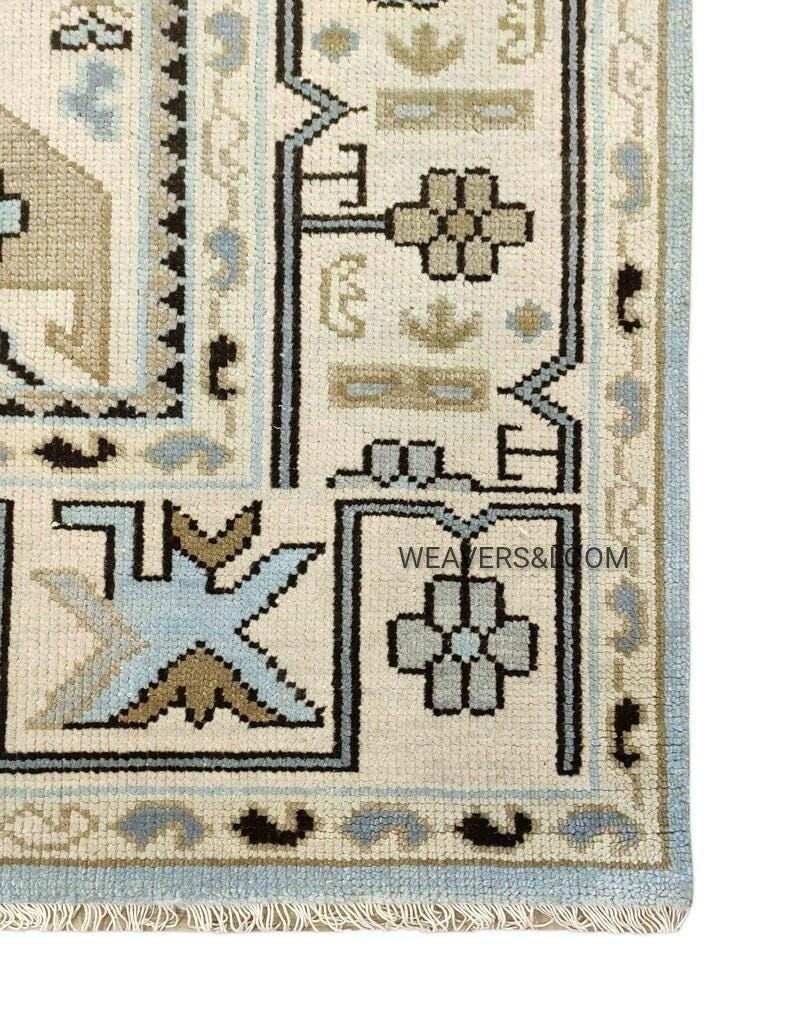PB Nicolette Hand Knotted Rug, Blue-Cream Wool Area Rug for Living room, Dining area, Oushak Rug, Handmade Rug, Beige and Blue Knotted Rug