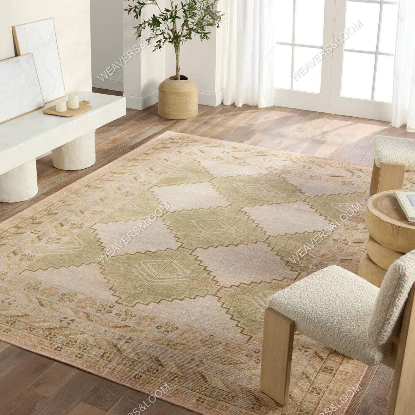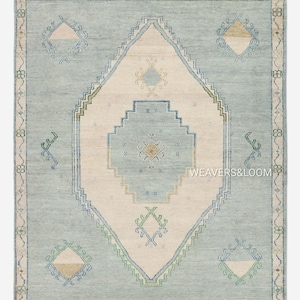 9x12 Green Muted Rhapsody Hand Knotted Oushak Modern Area Rug |New Zealand Wool| Turkish Design|Premium Handmade Area Rug,8x10,9x12,10x14
