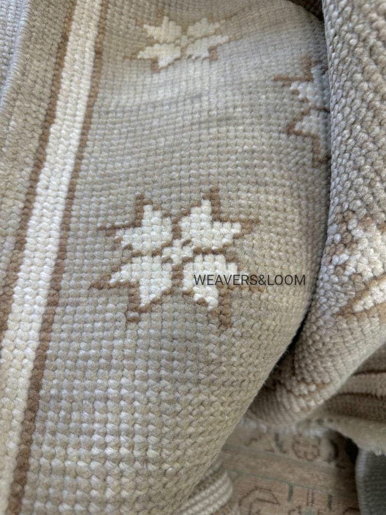 Brown Hand Knotted Oushak Rug, Ivory Wool Area Rug for Bedroom,Living room,dining area,Pastel Oushak Rug,Handmade Rug,Turkish wool Rug 10x14