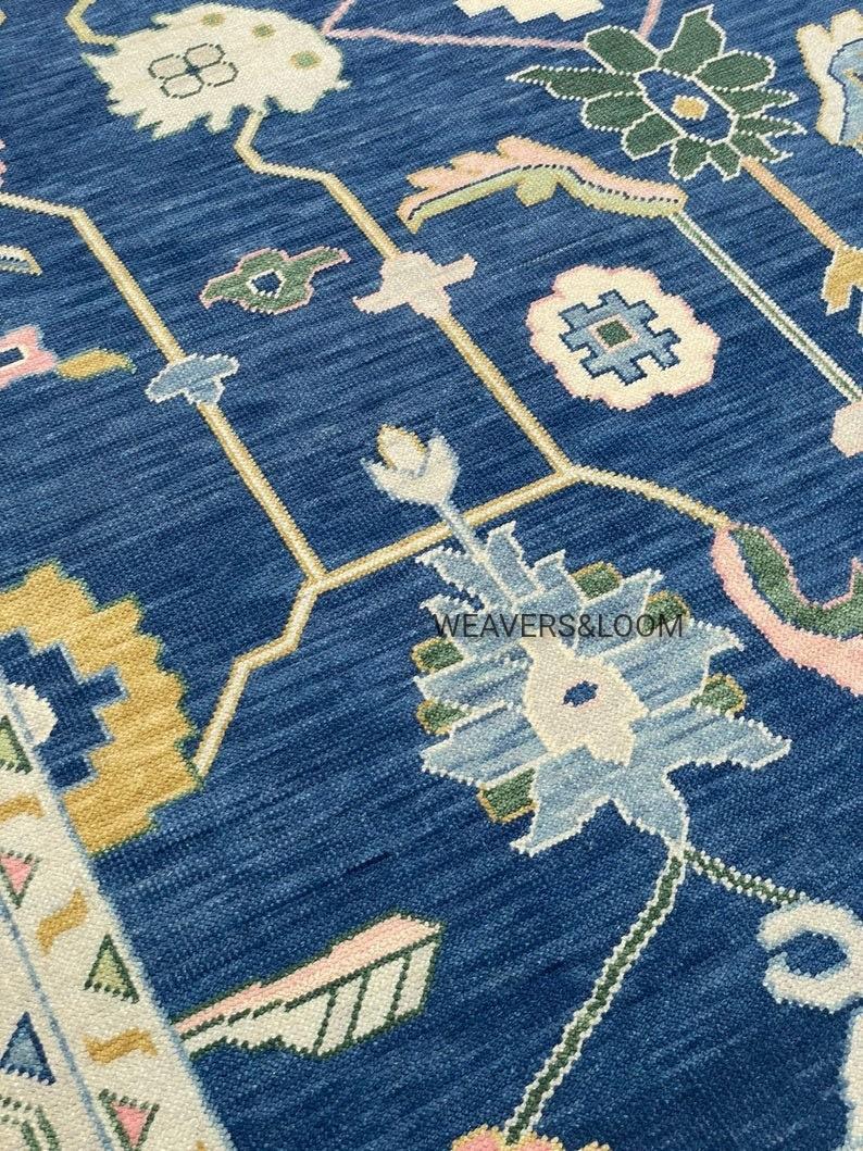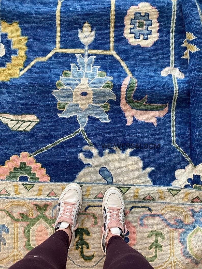 Blue Hand Knotted Oushak Rug, Blue Wool Area Rug for Bedroom,Living room,dining area,Pastel Oushak Rug, Handmade Rug,Turkish Wool Rug 9x12