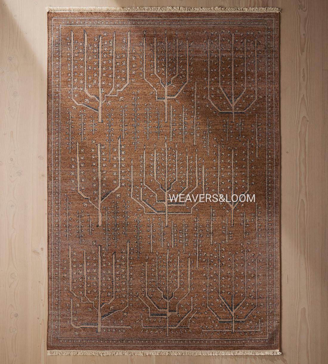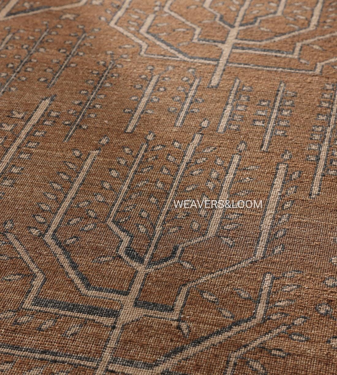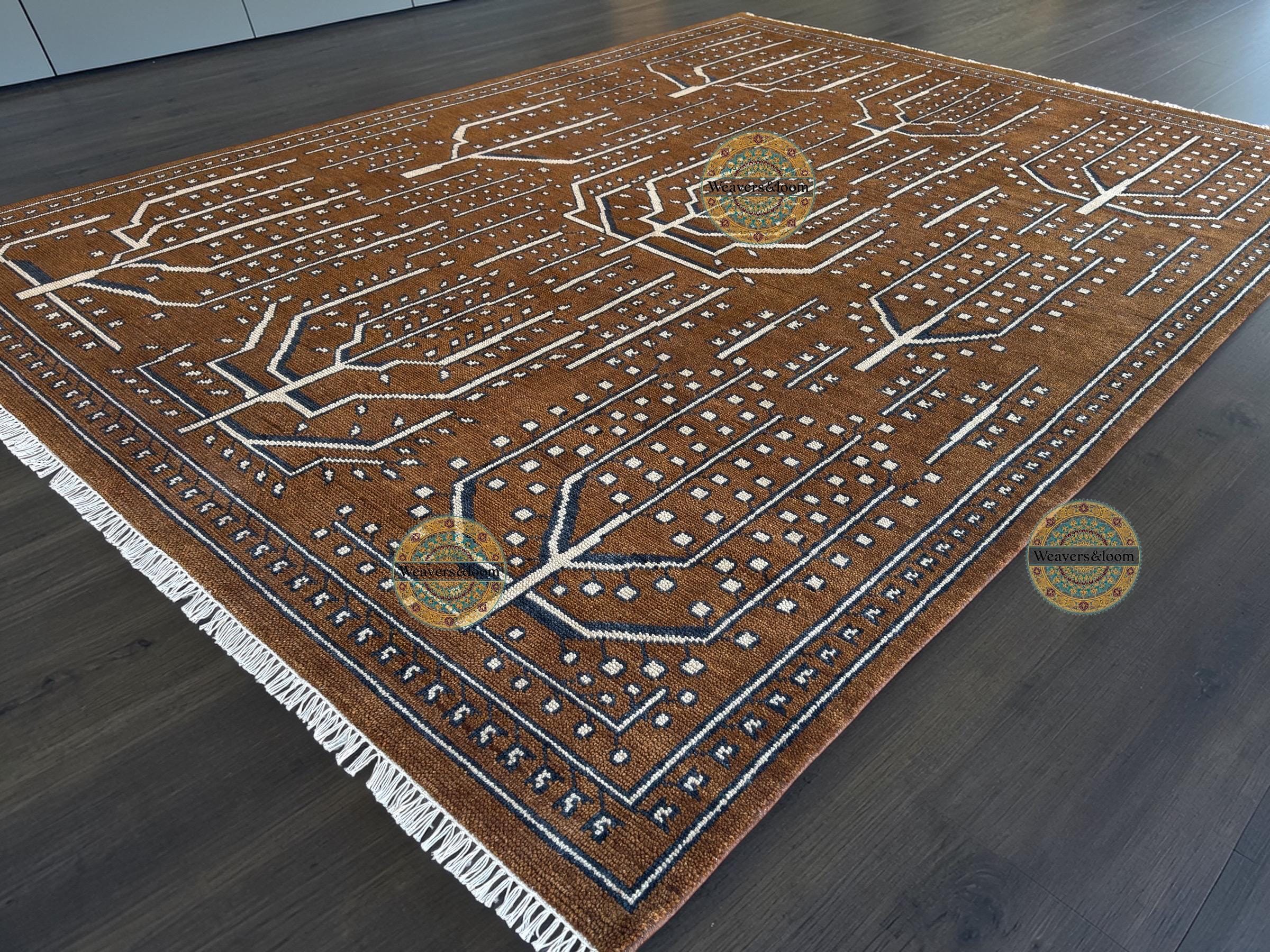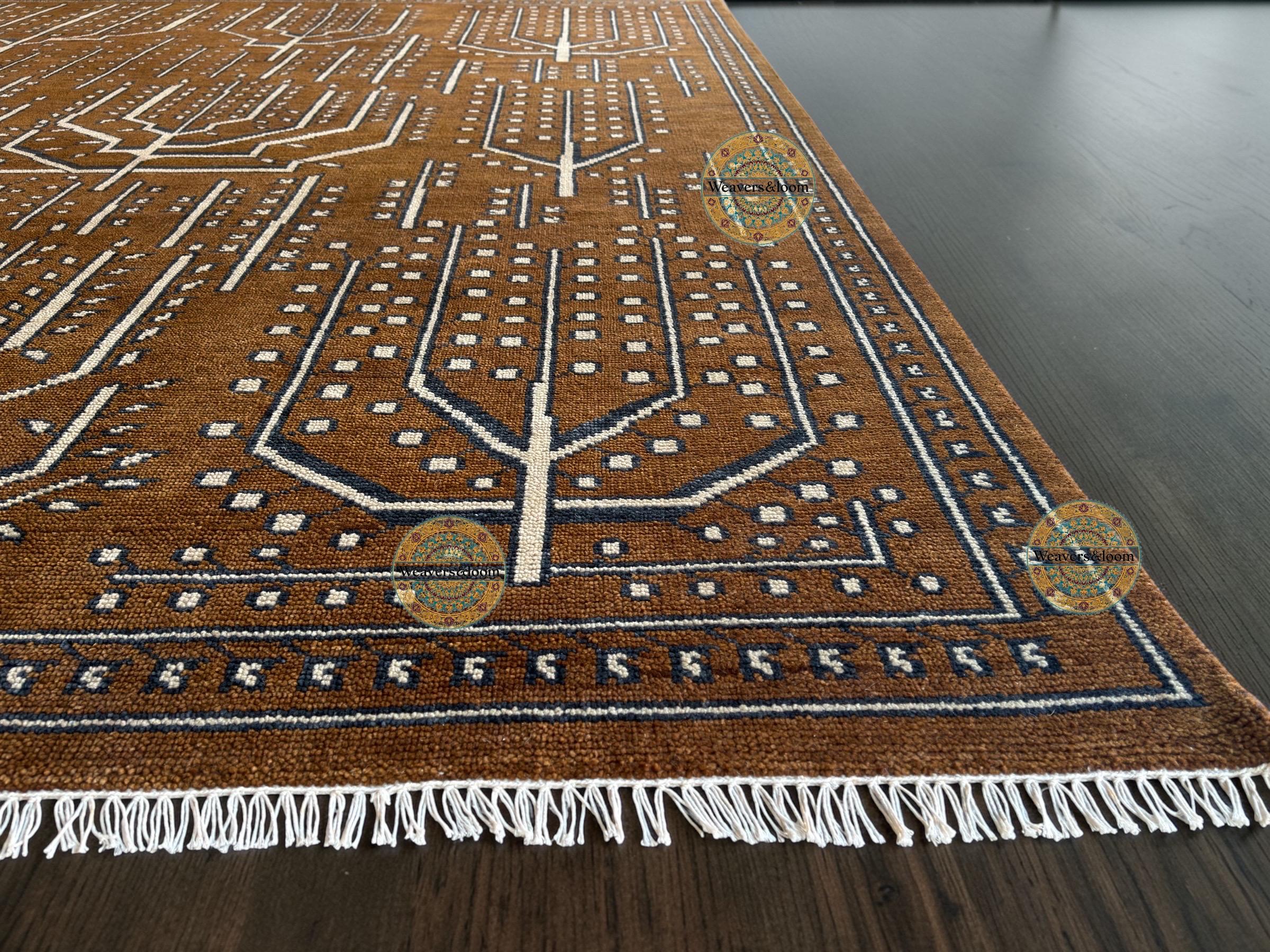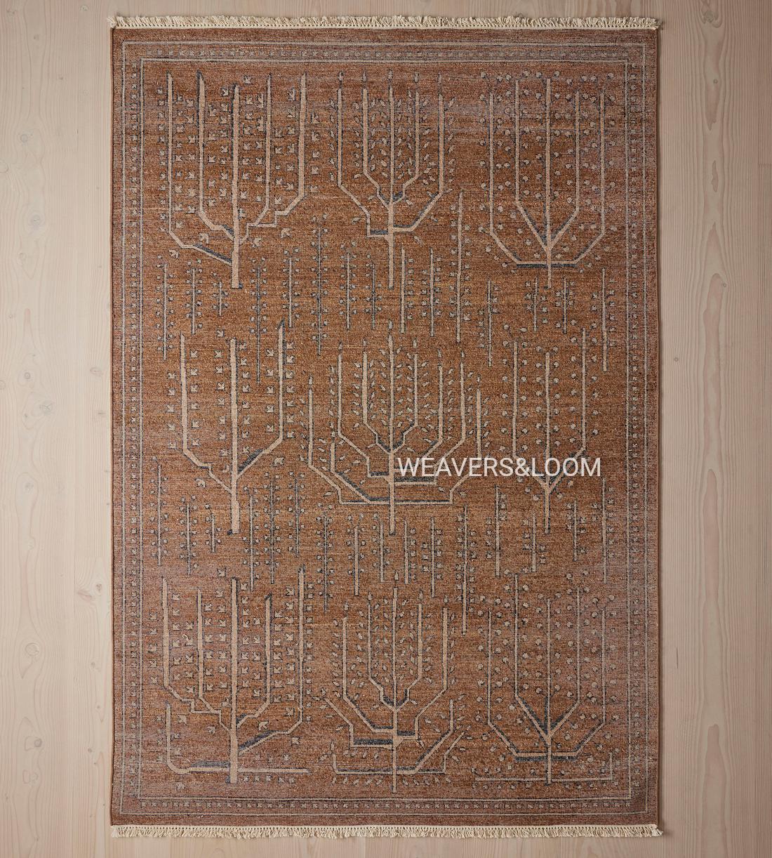 Handwoven Brown Vintage Rug with Tree of Life Design – Bohemian Wool Area Carpet