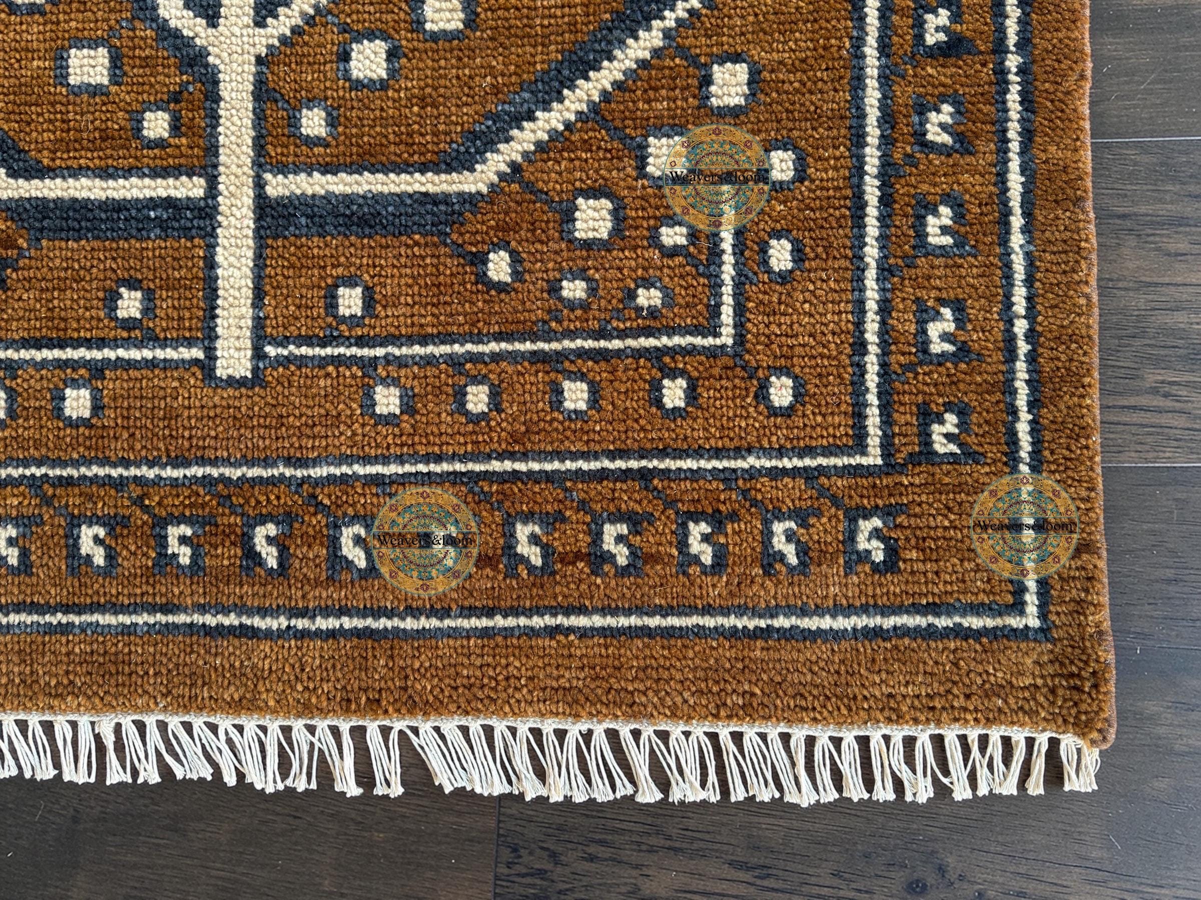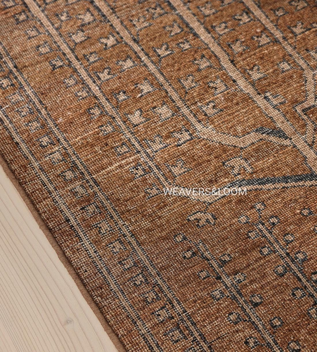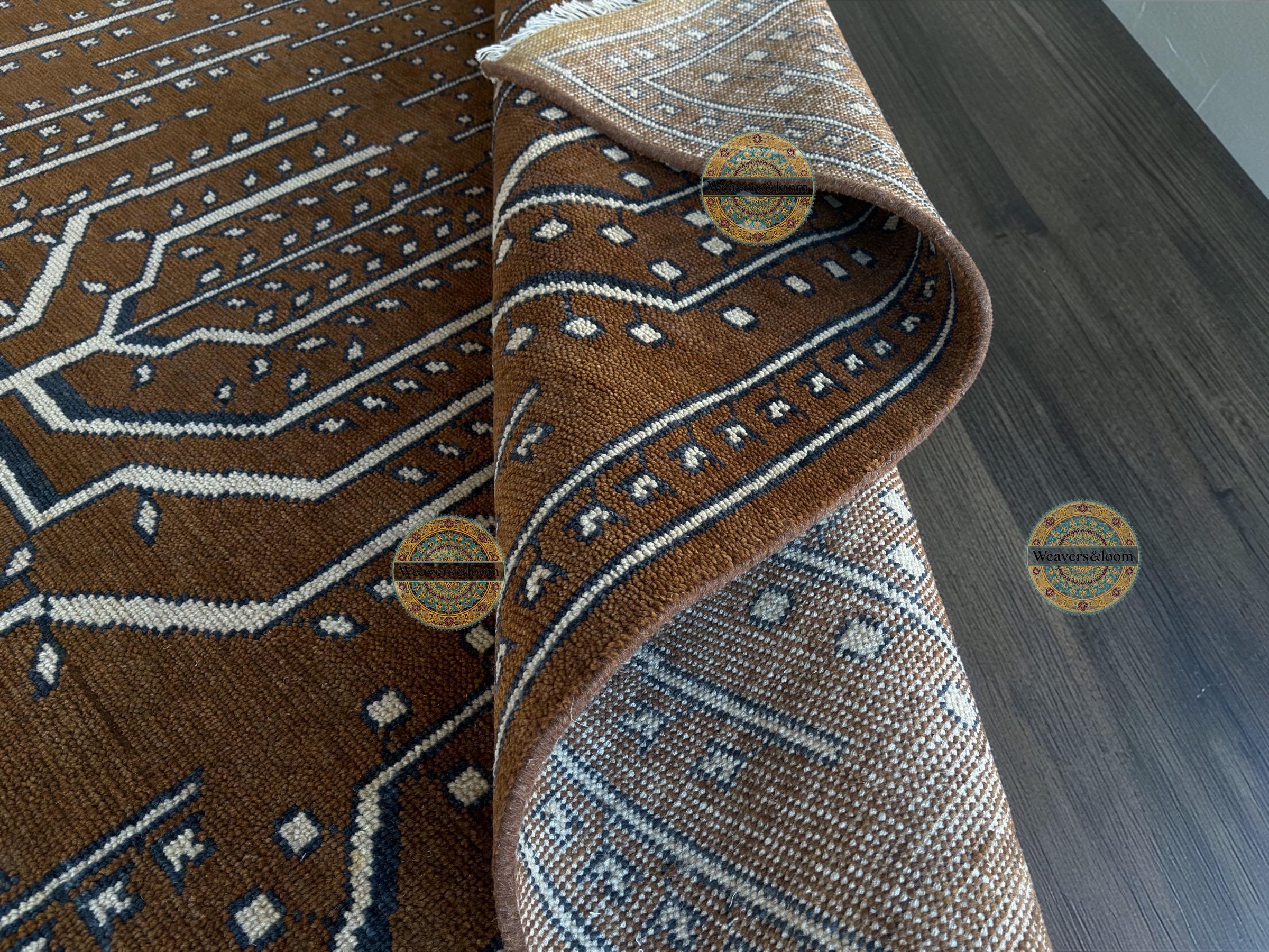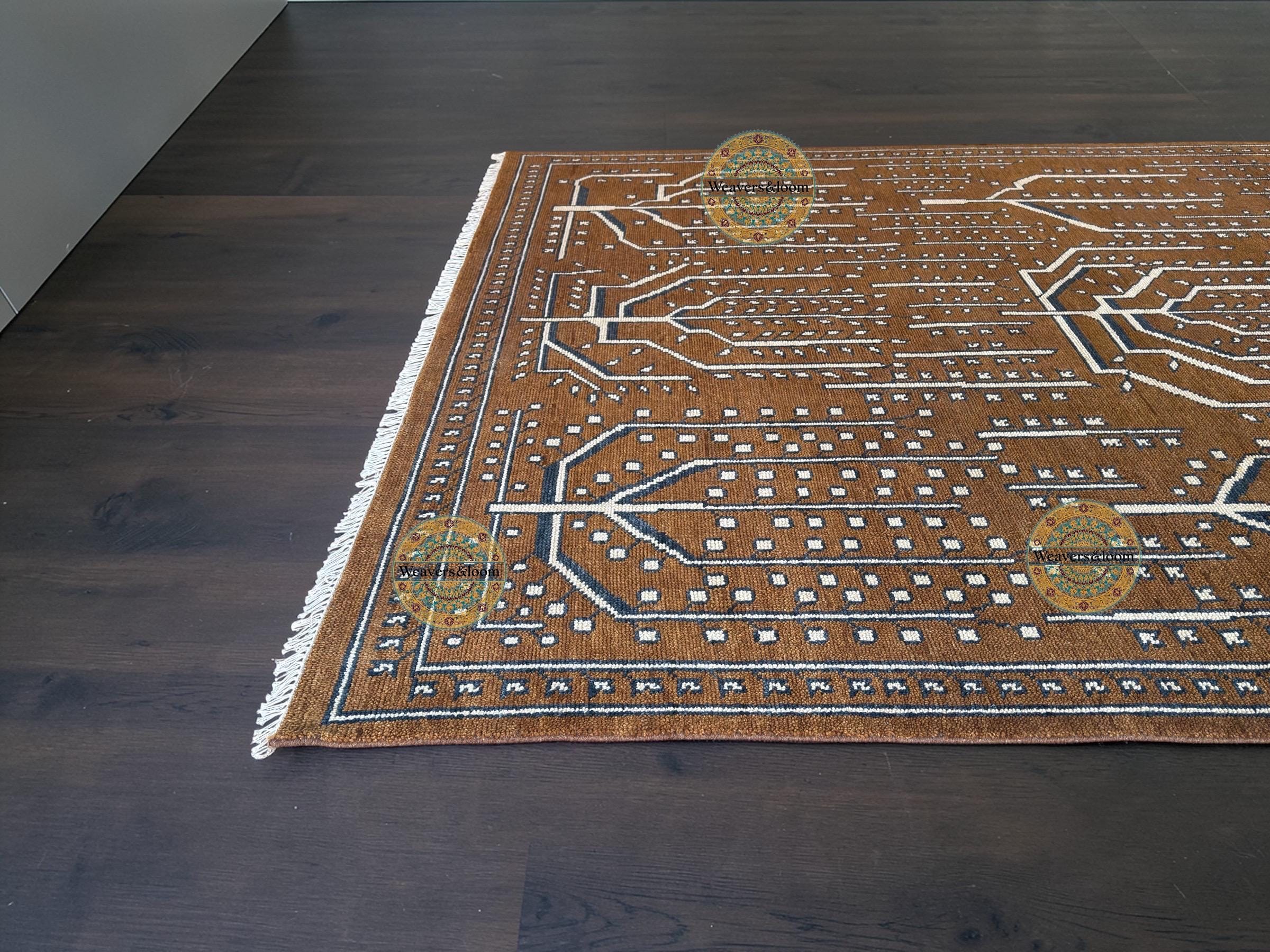 Handwoven Brown Vintage Rug with Tree of Life Design – Bohemian Wool Area Carpet