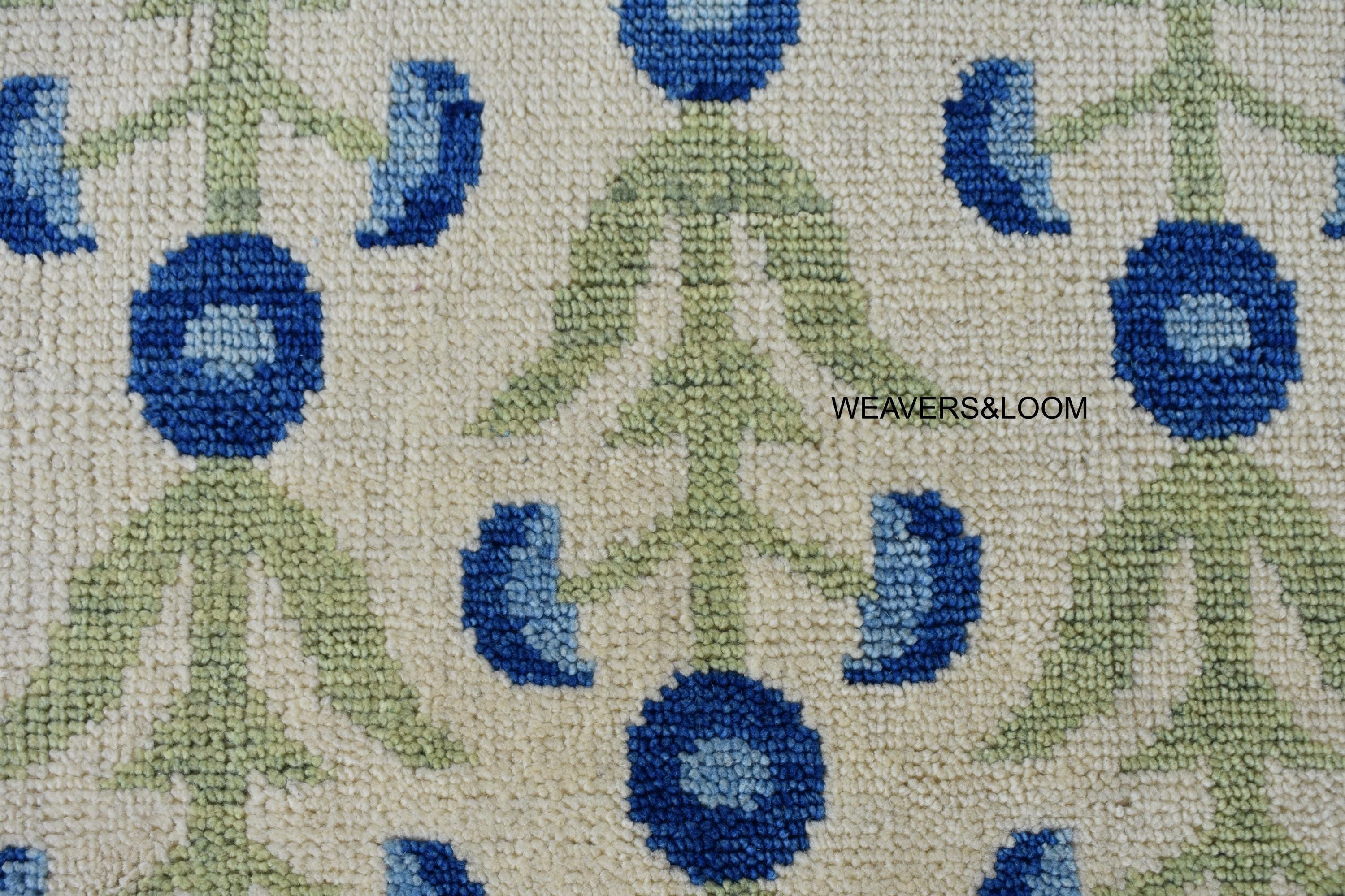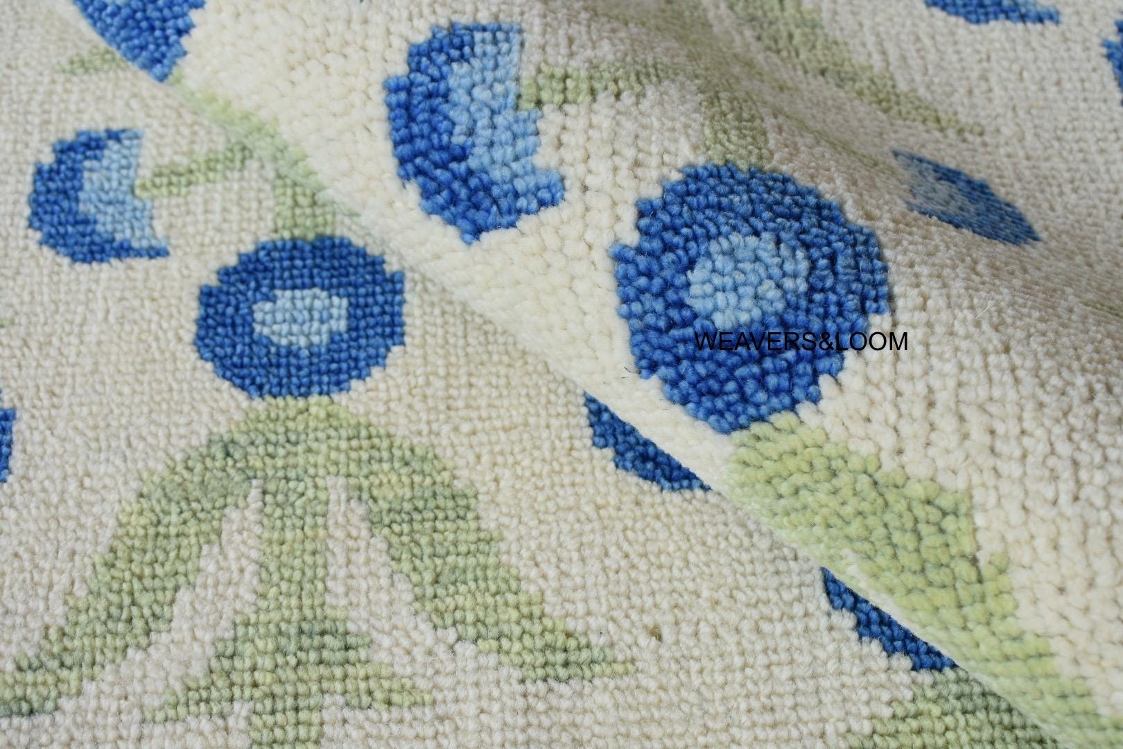 Ivory-Blue Hand Knotted Rug, Modern Oushak Wool Ares Rug for Bedroom, Living room, Dining area, Pastel Oushak Rug, Handmade Rug,Trending Rug