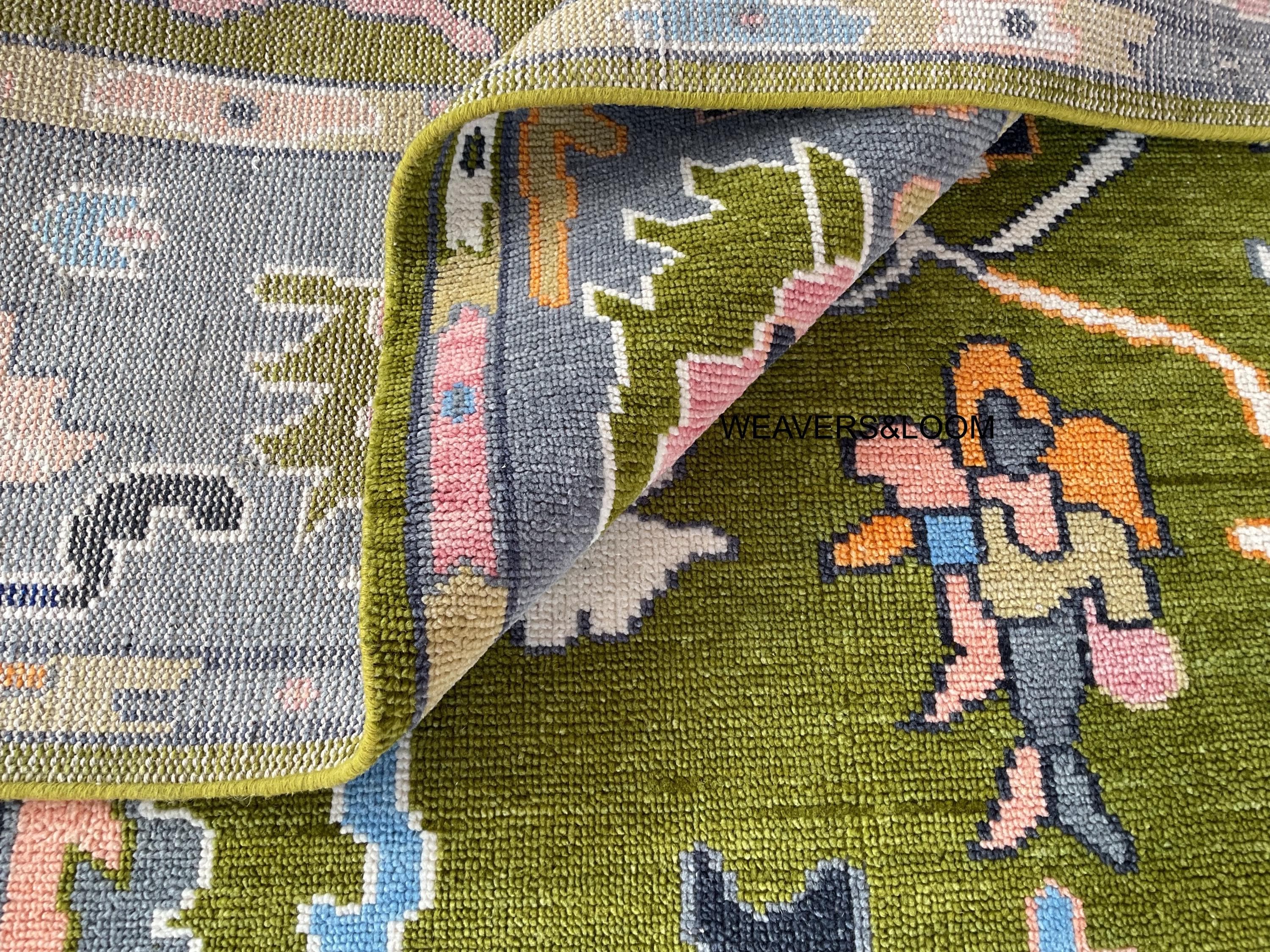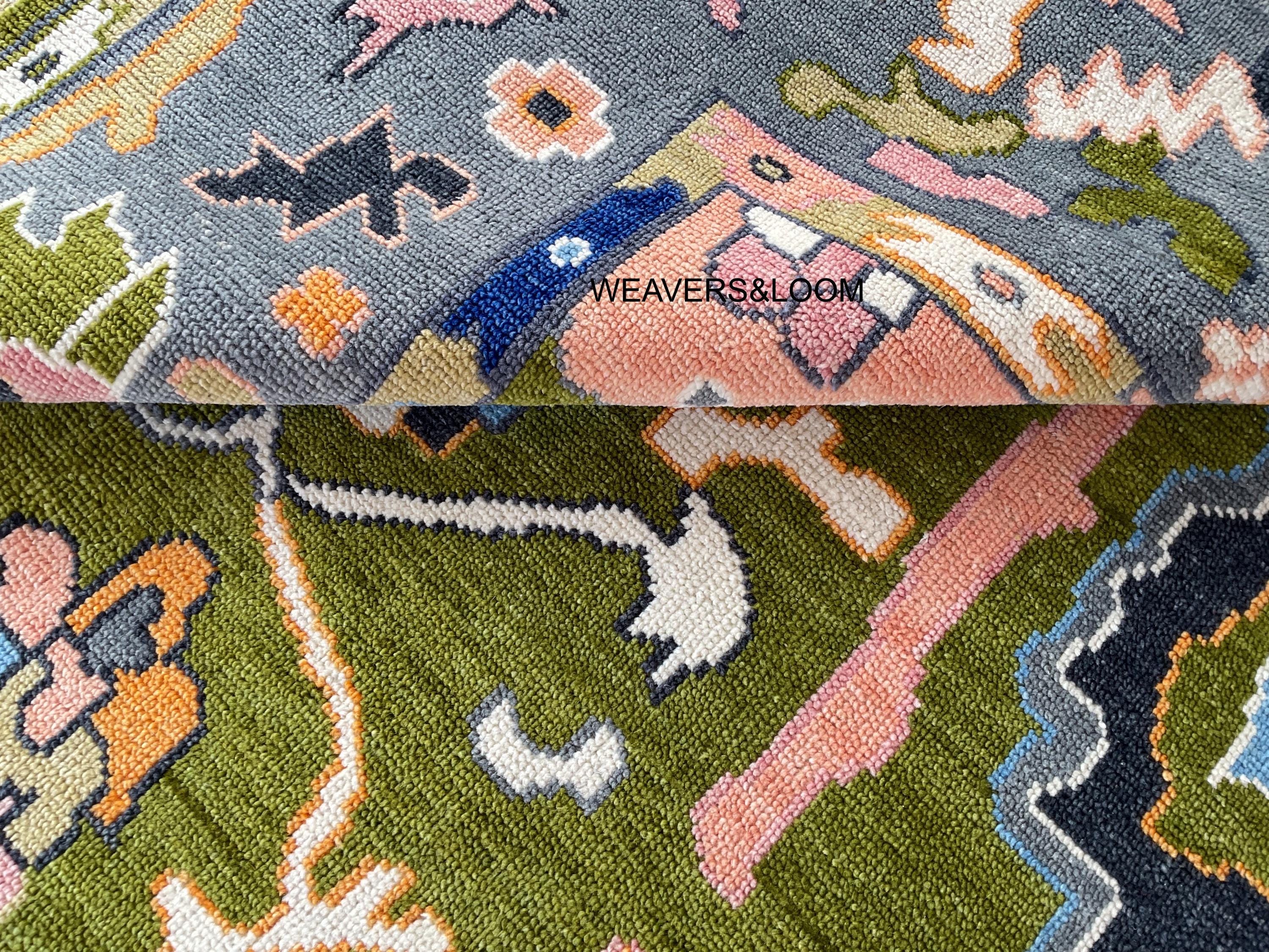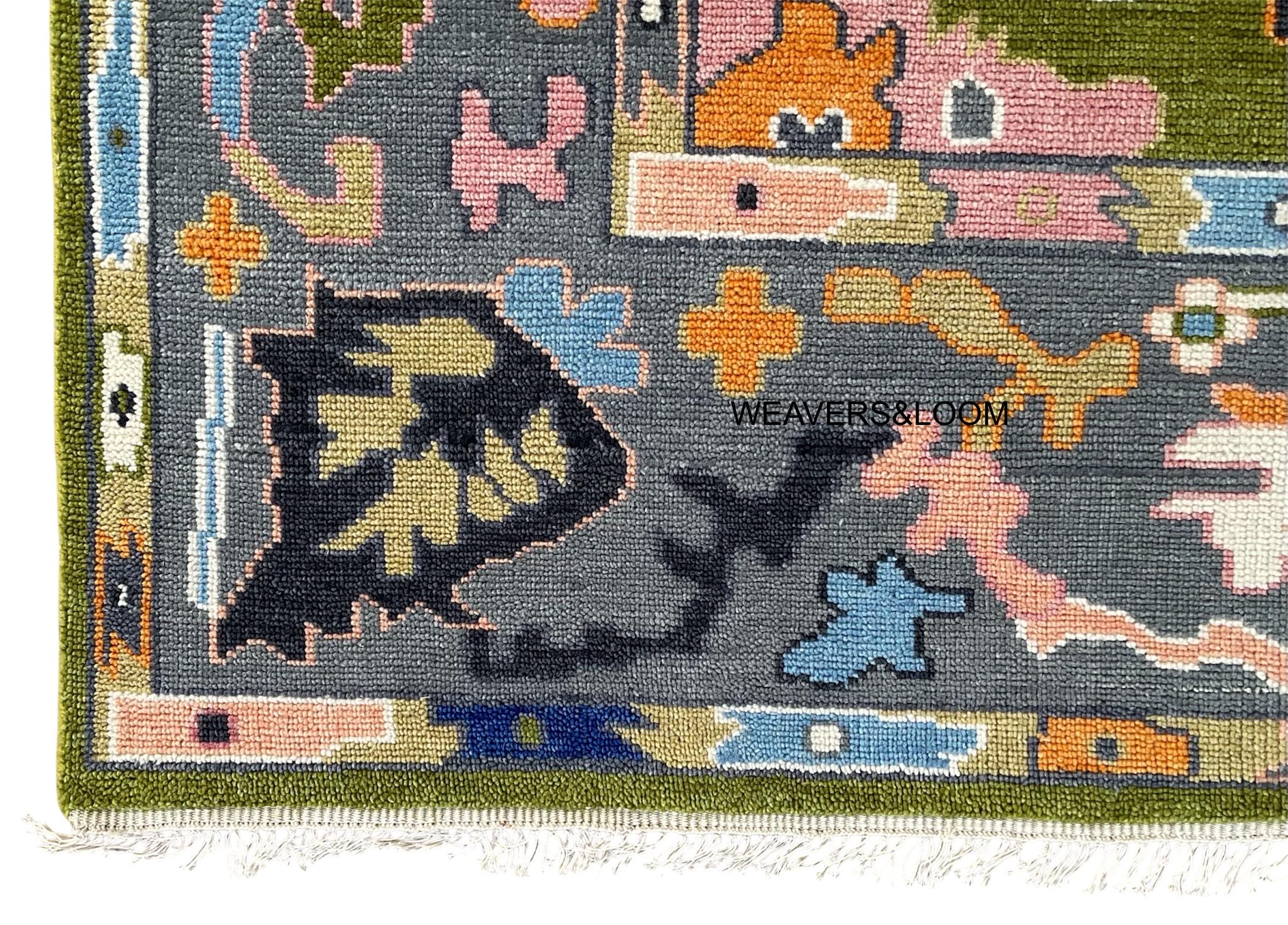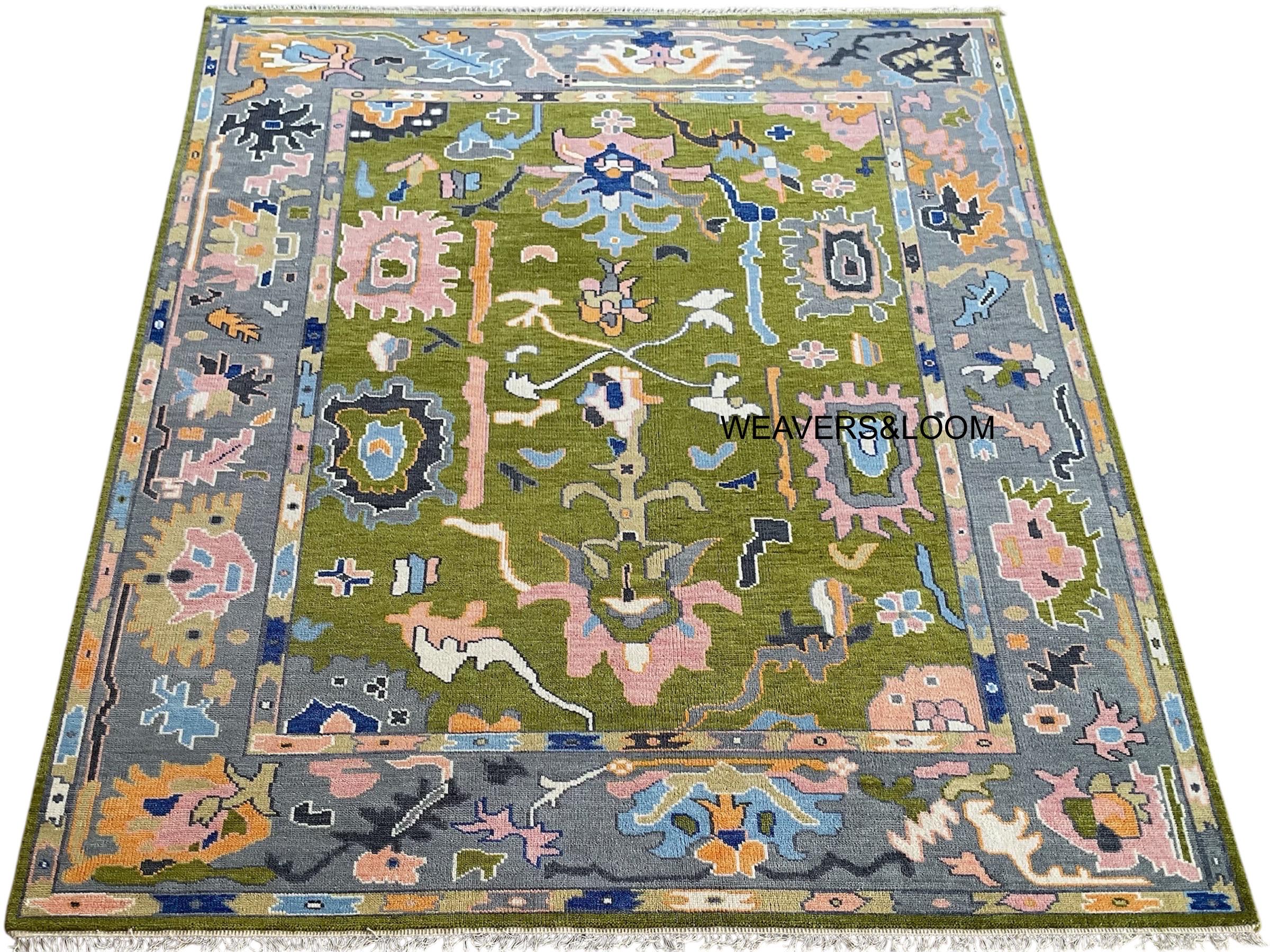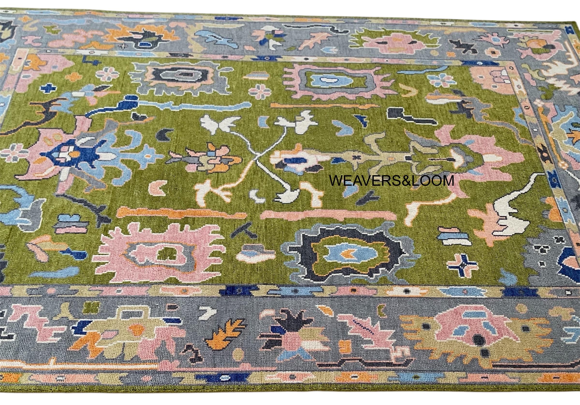 Hand Knotted Oushak Rug, Green Handmade Wool Area Rug for Bedroom, Living room, Dining area, Pastel Oushak Rug, Handmade Rug Turkish Rug