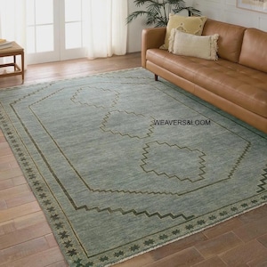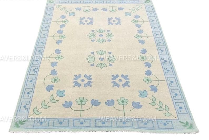 Blue Hand Knotted 9x12 Rug,Modern Oushak Rug,Wool Area Rug for Living room, Bedroom,Dining Area,Pastel Oushak Rug,Handmade Turkish rug