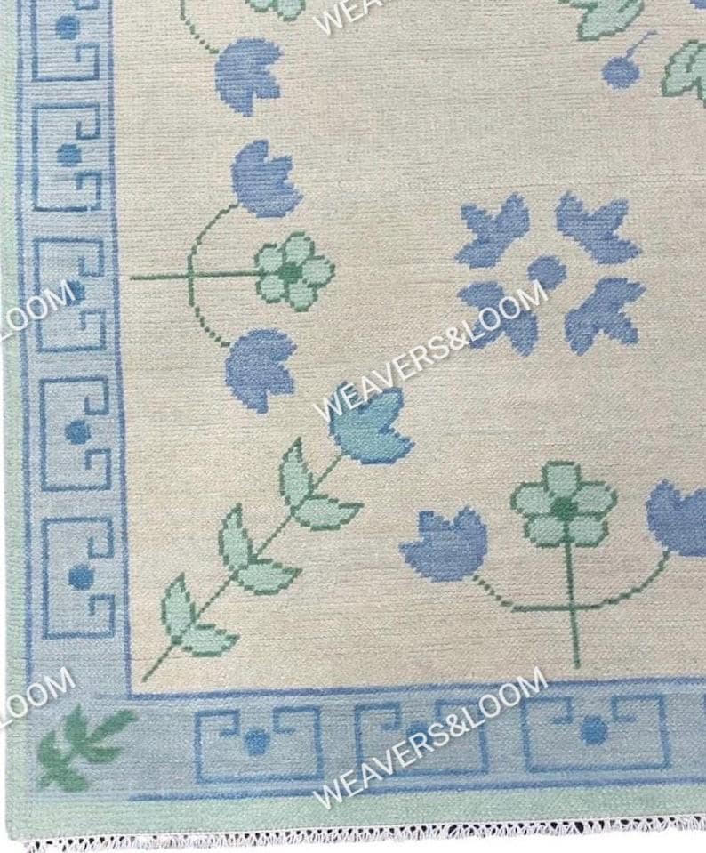 This rug in My Store is Made up of wool this exquisite hand-knotted rug is Low Pile Rug Which Is durable with a gentle feel. The defining details of this rug are sure to make it a conversation piece and an icon of your household. It is a joy to step out of bed in the morning onto these rugs and is also perfect for rolling out in a calming nursery or a delightful playroom.