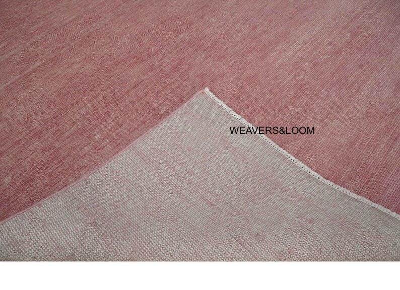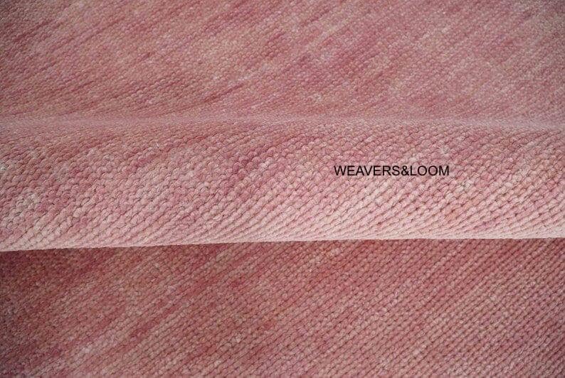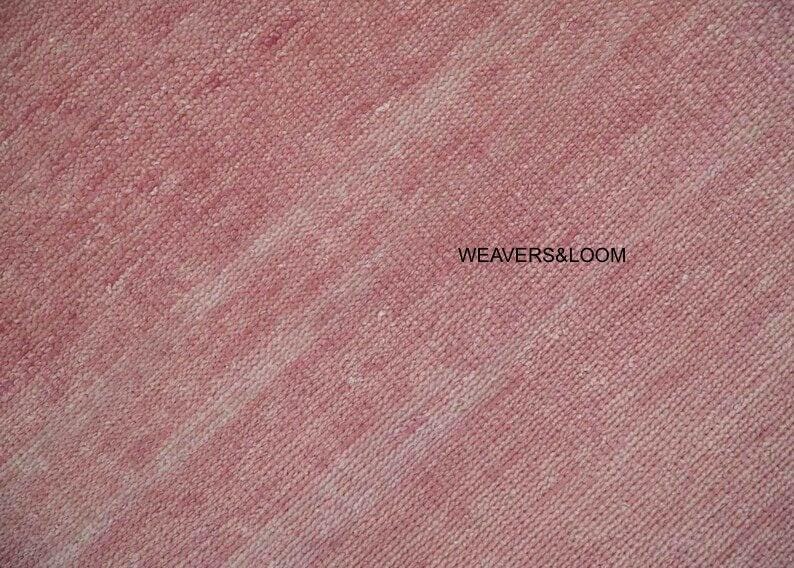 Blush Pink Oushak Area Rug – Handwoven Wool Flatweave Carpet, Minimalist Solid Color Rug for Living Room, Bedroom, or Office Decor