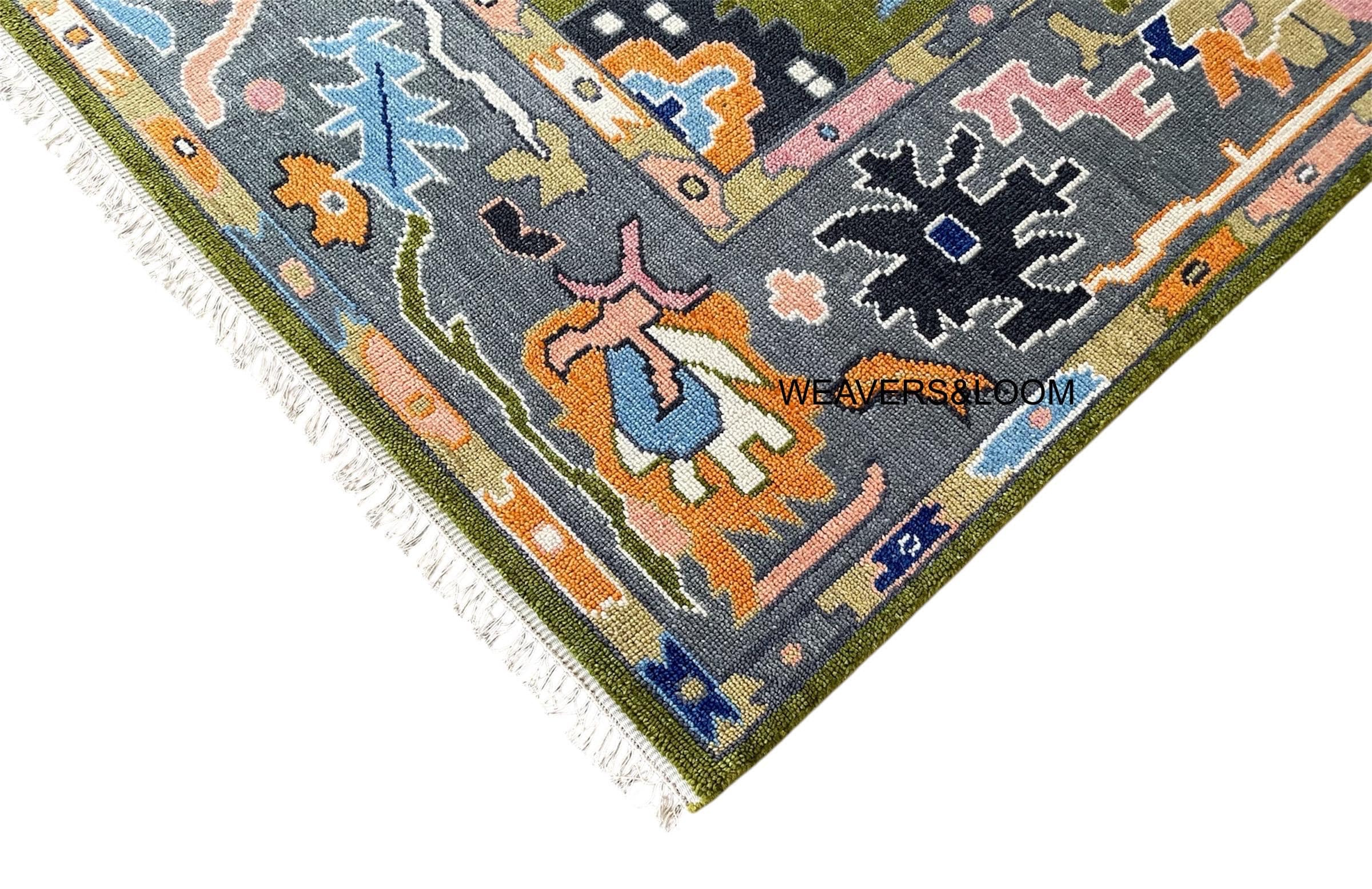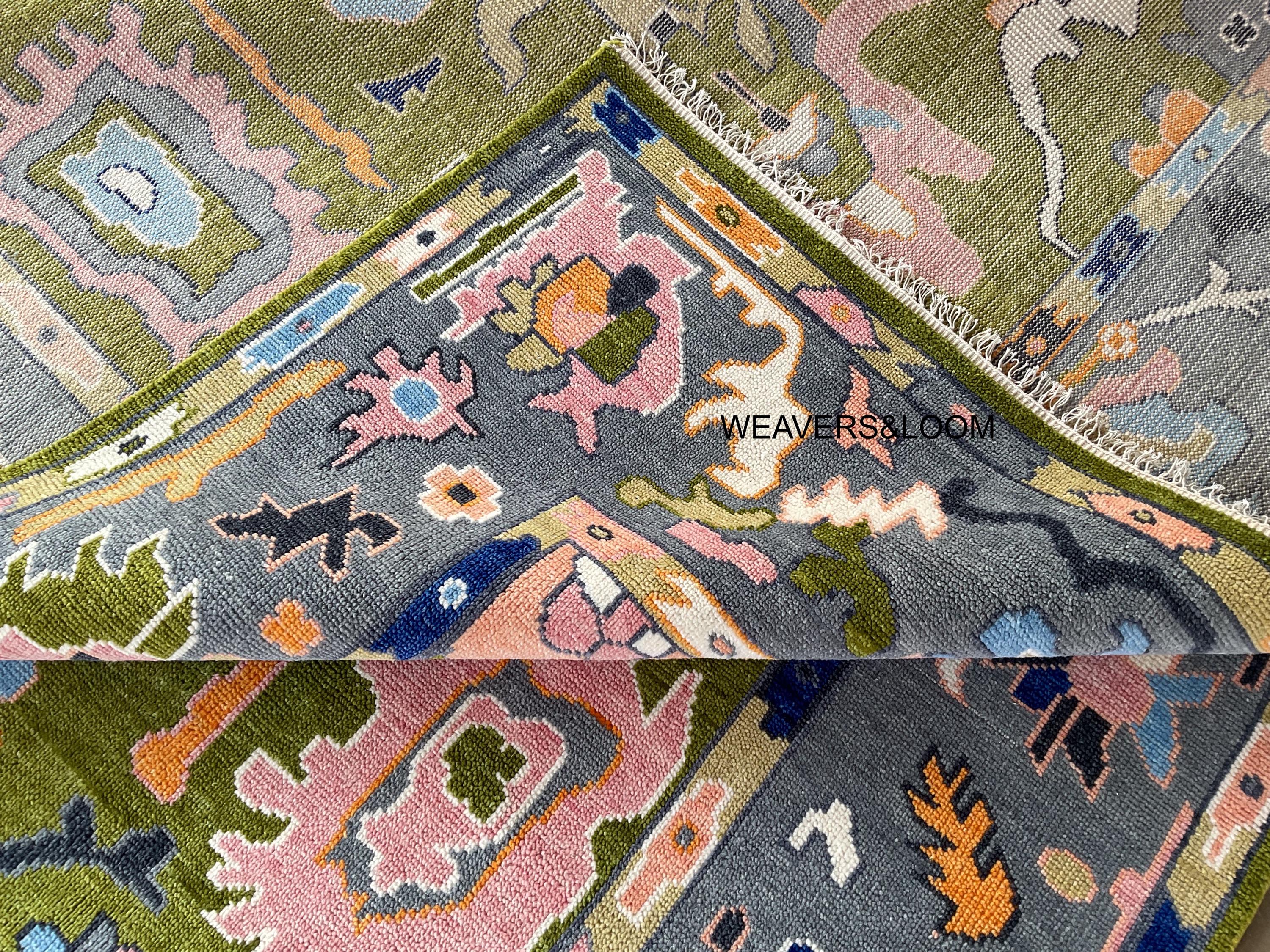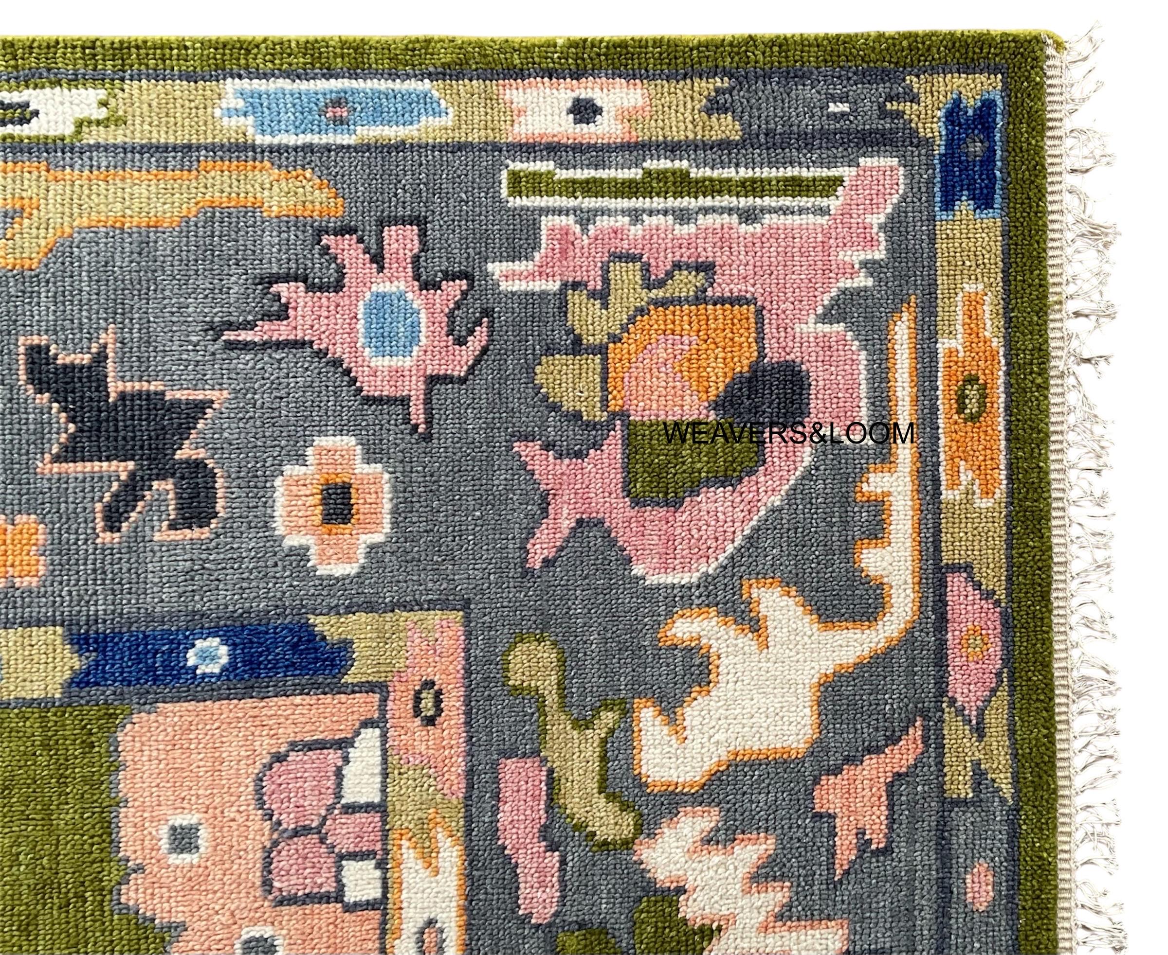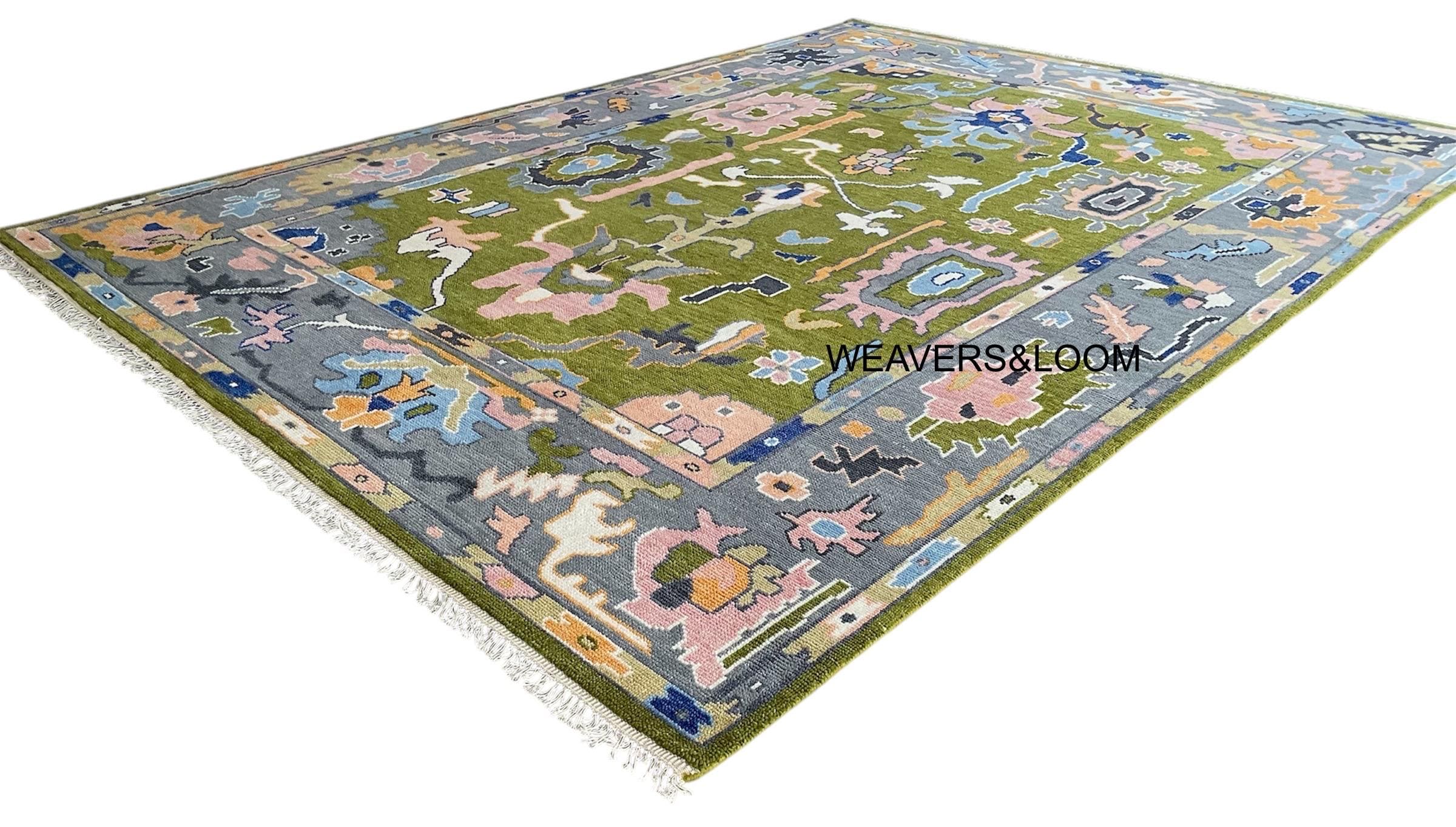 Green Hand Knotted Wool Rug,Handmade Rug Area Rug for Bedroom,Living room,Dining Area office,grey wool Hand knotted rug,green Rug,pastel rug