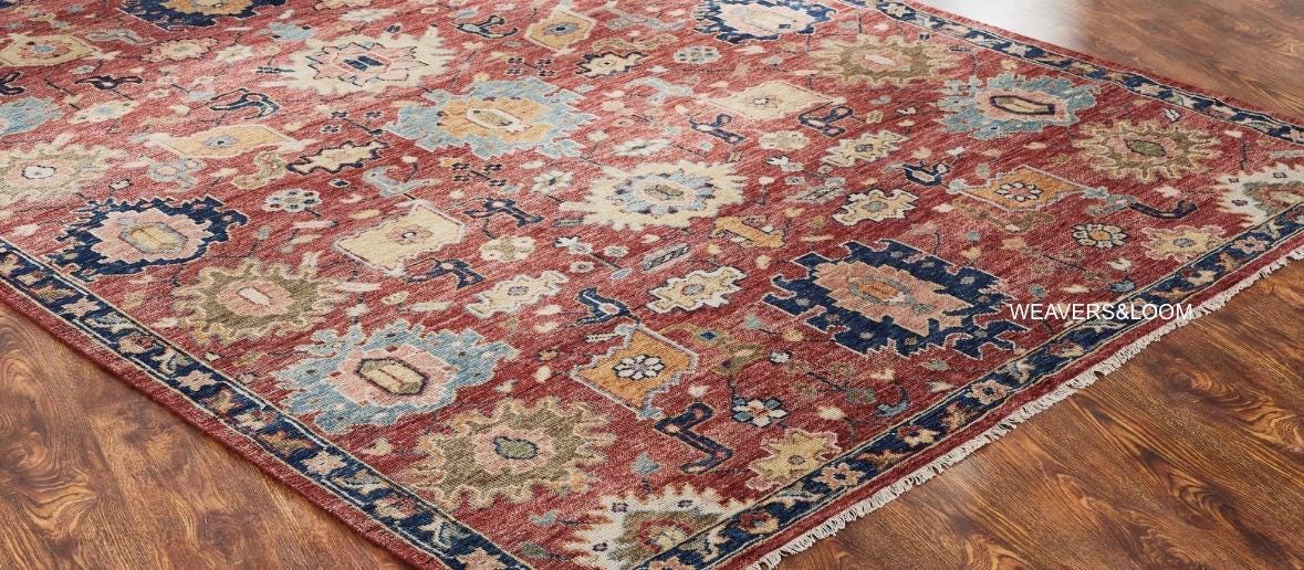 Hand Knotted Oushak Rug | Traditional Turkish Wool Area Rug | Red Oriental Carpet for Living Room & Home Décor Office,Trending Wool Rug