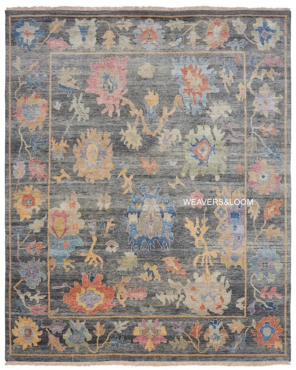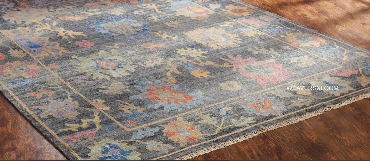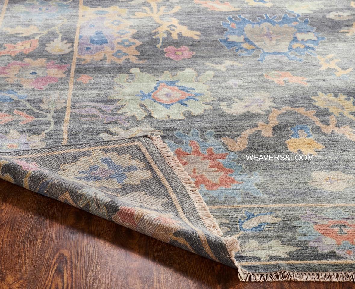 Smoked Hand knotted Muted Turkish Oushak Rug 100% Wool Traditional Oriental Area Rug , Blue Color Trending Hand Knotted Green Area Rug