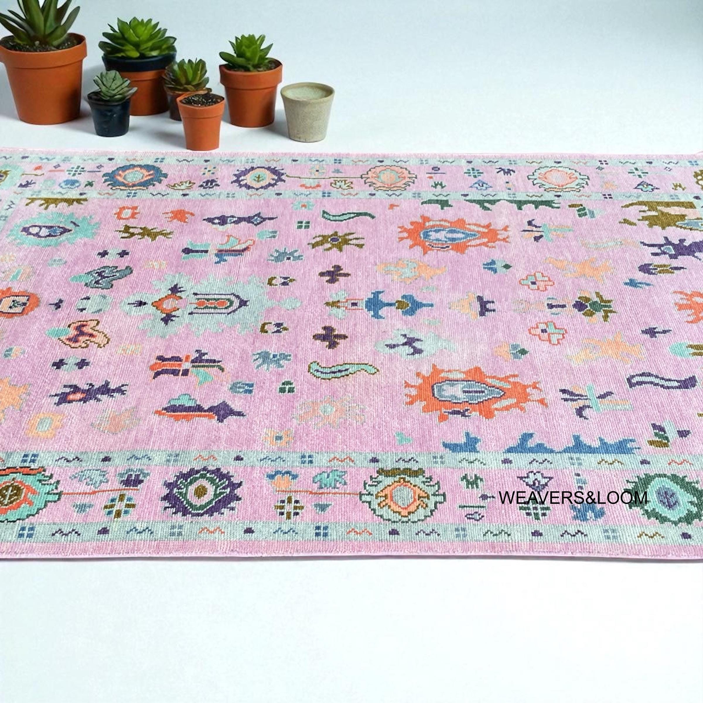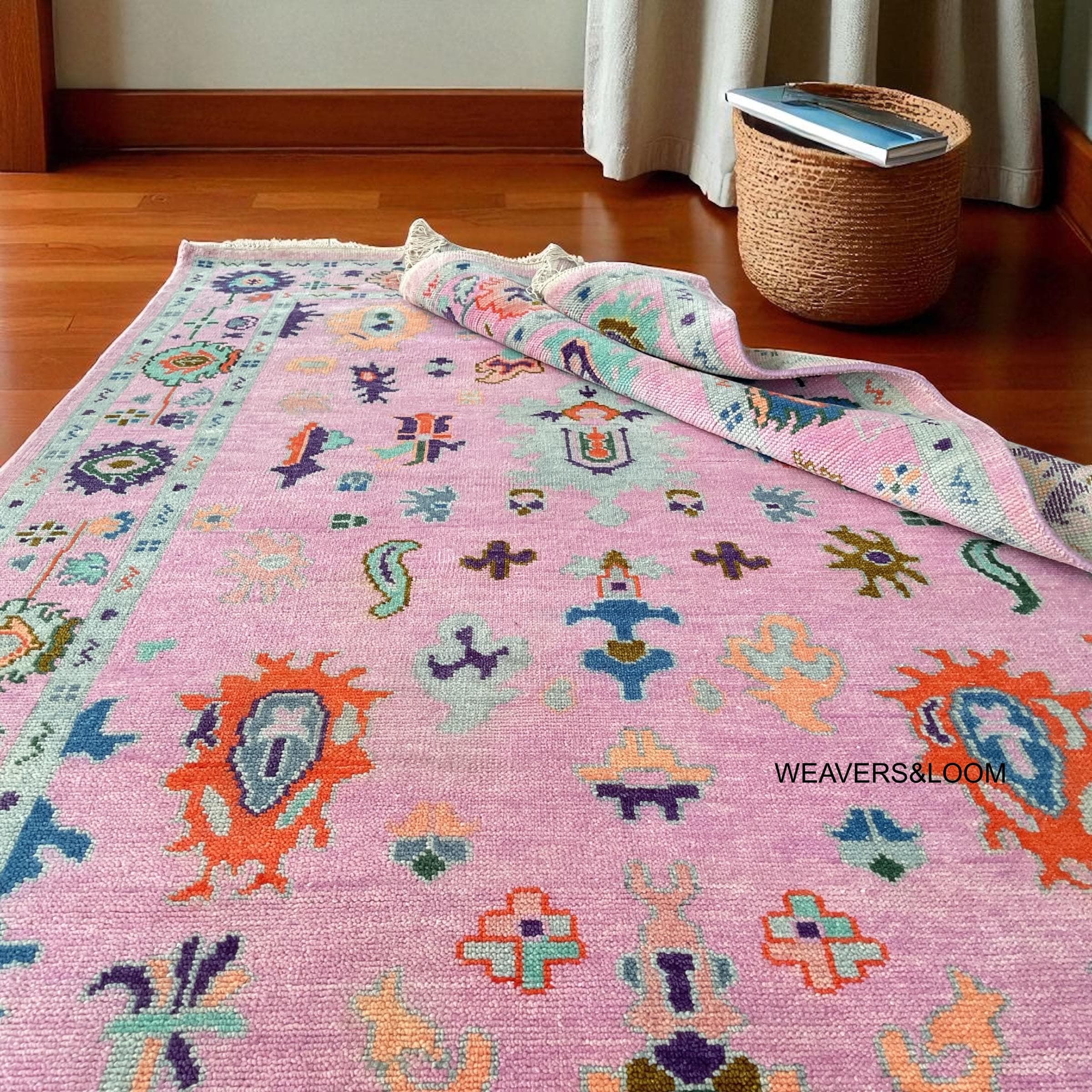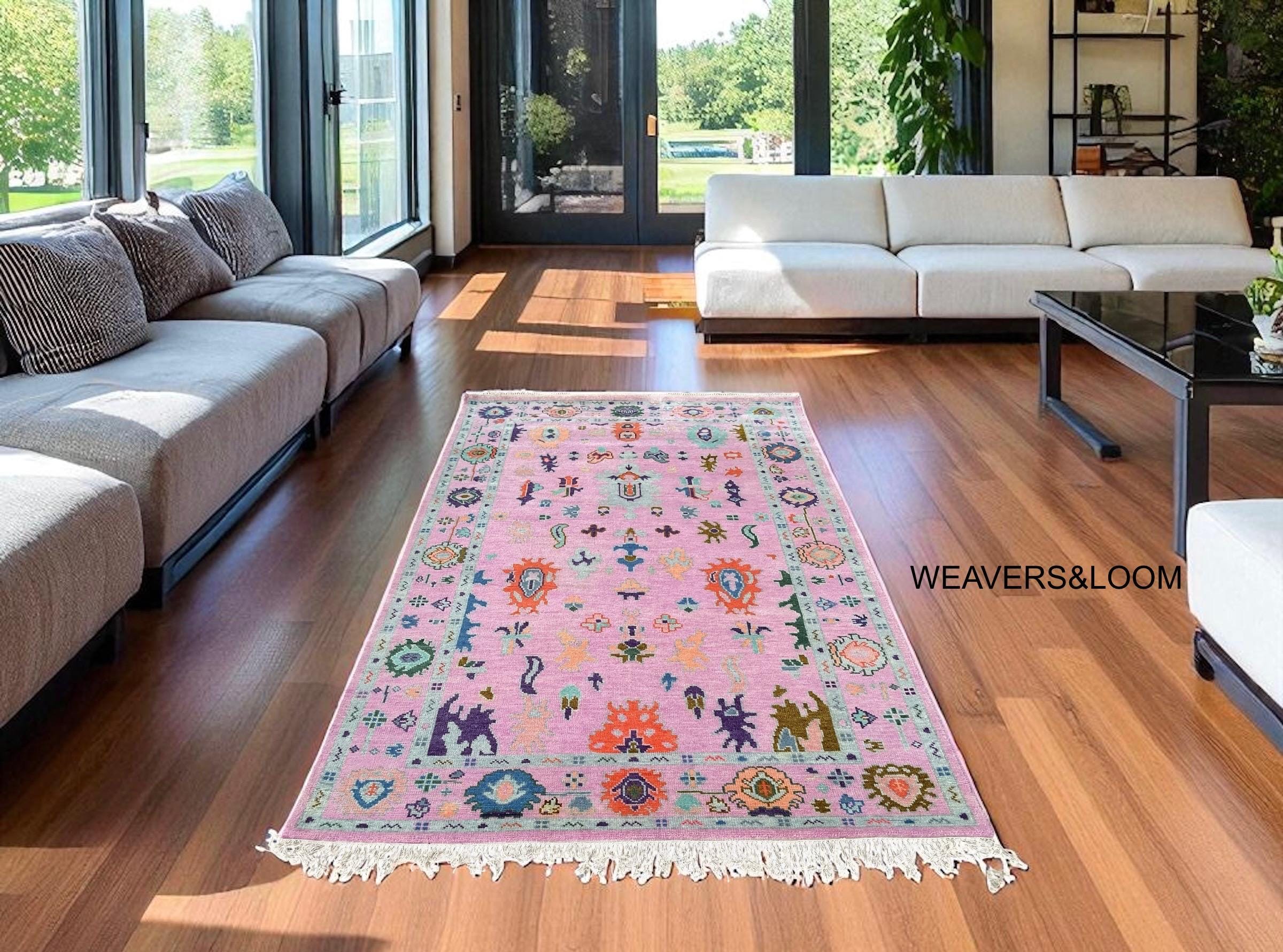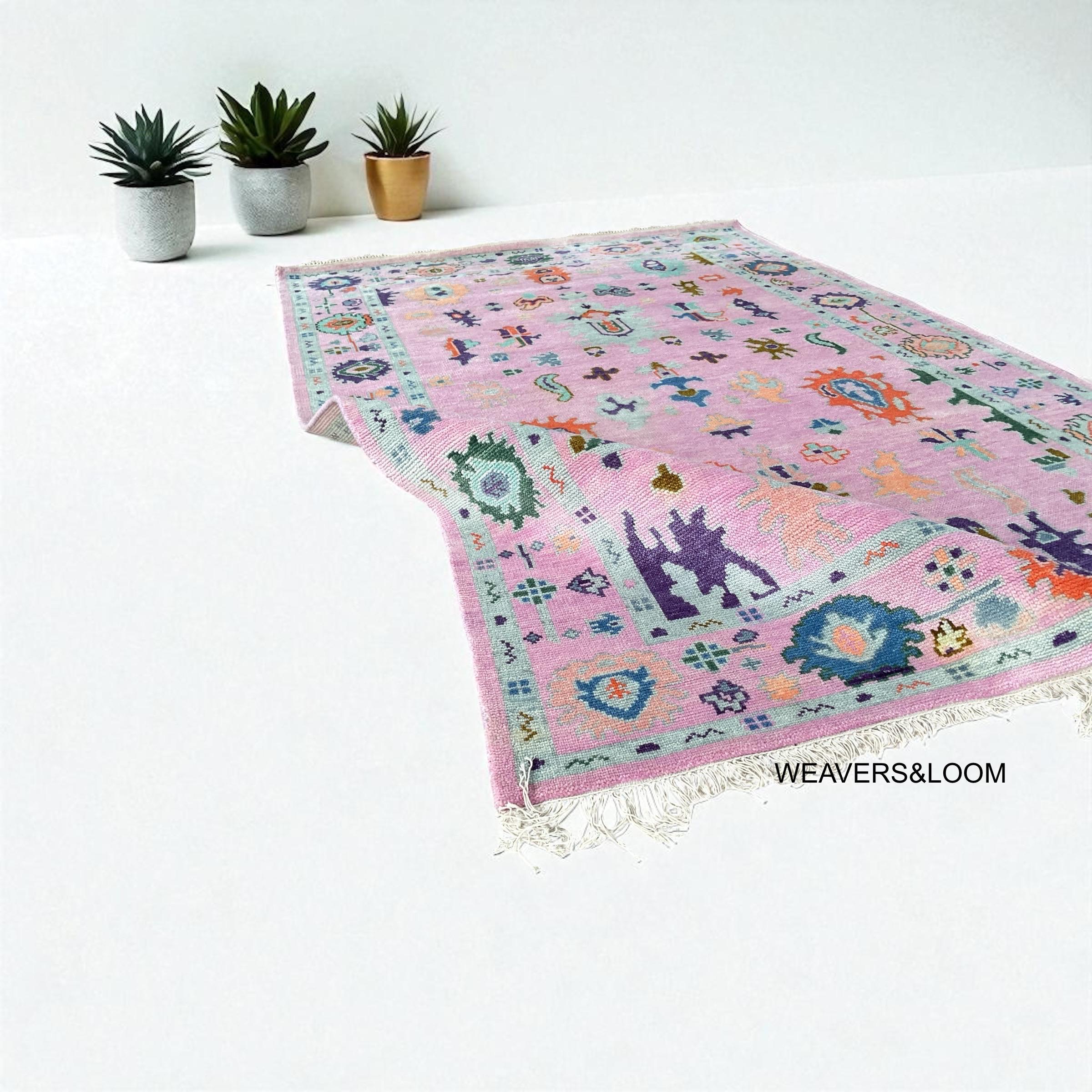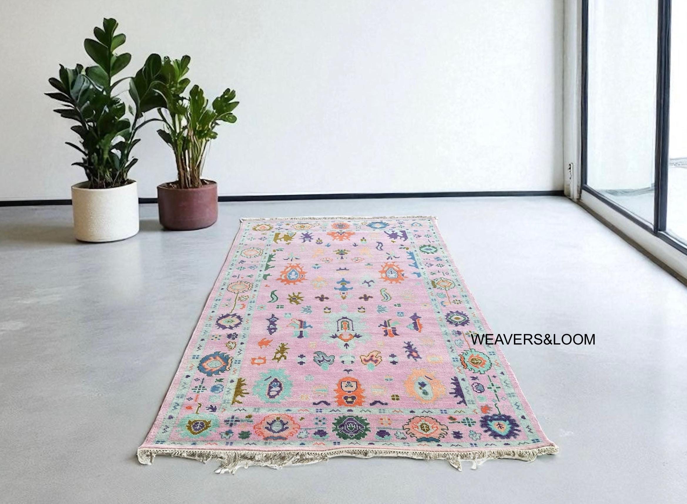 oushak 6x9 Quick Ship Pink Hand knotted Indo oushak Rug for Timeless Home Décor - Shop Now! turkish rug, floor and rugs, handmade rug, rugs
