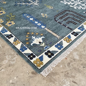 This rug in My Store is Made up of wool this exquisite hand-knotted rug is Low Pile Rug Which Is durable with a gentle feel. The defining details of this rug are sure to make it a conversation piece and an icon of your household. It is a joy to step out of bed in the morning onto these rugs and is also perfect for rolling out in a calming nursery or a delightful playroom.