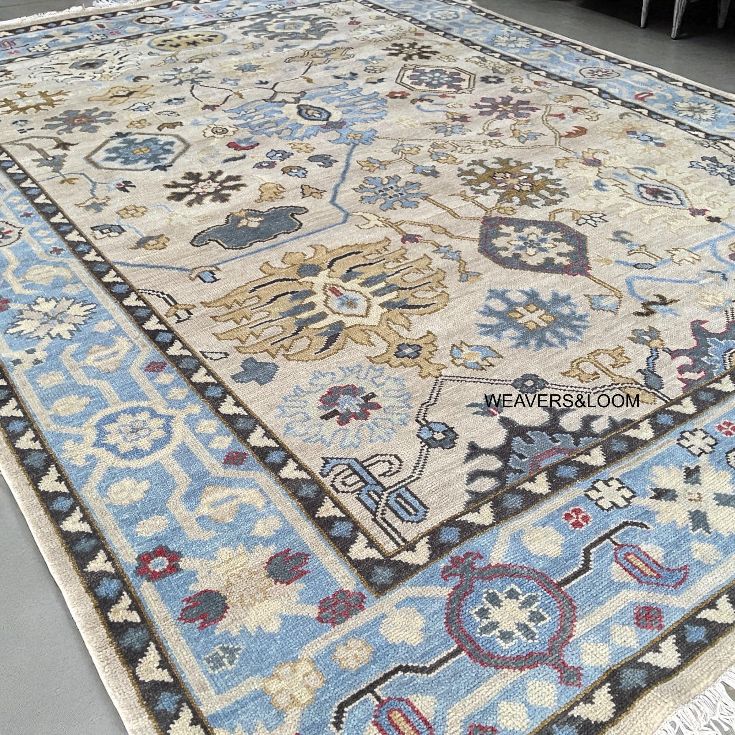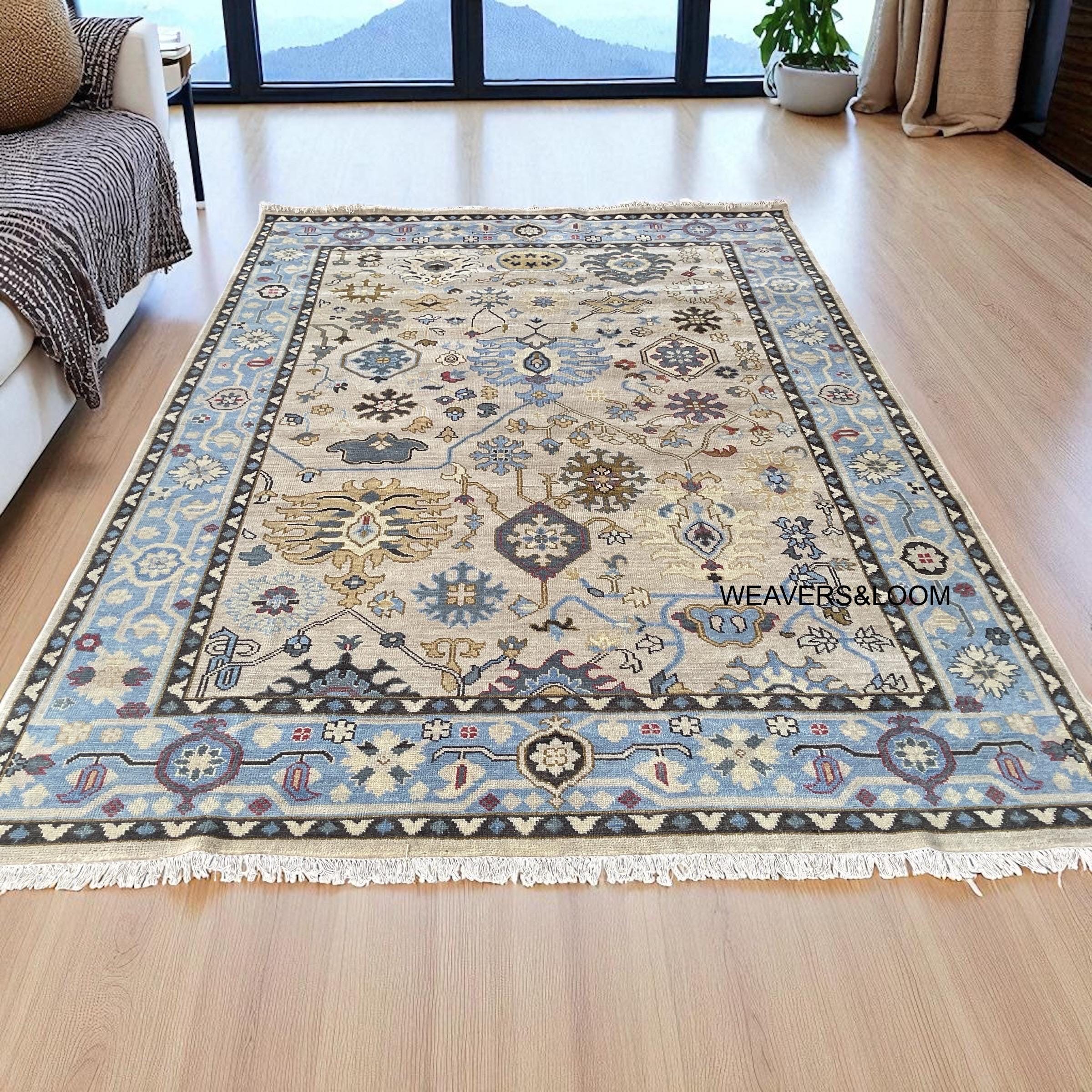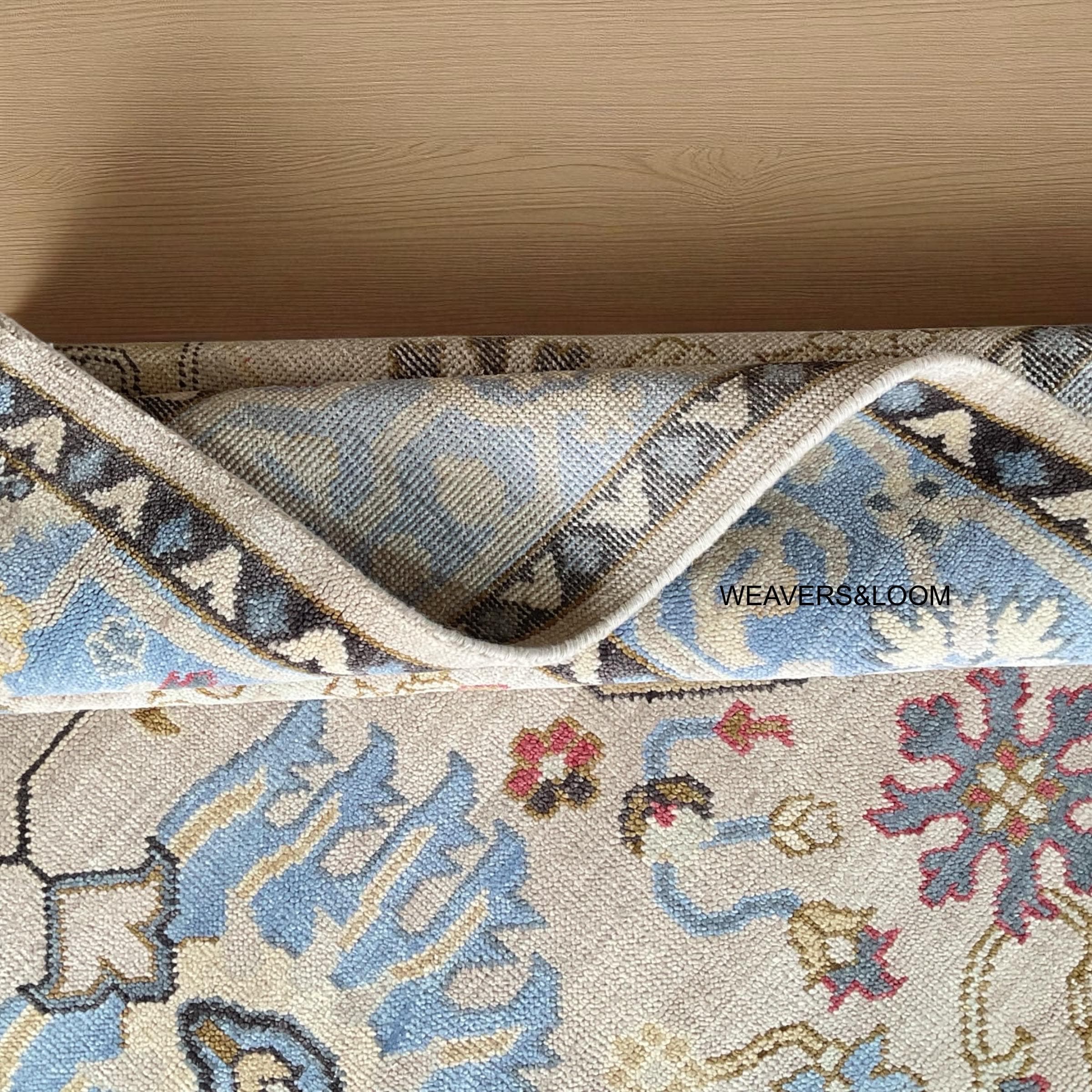 Handmade Oushak Rug 8x10 – Turkish Knot | Vintage-Inspired Beige Oushak Hand-Knotted Woollen Rug | Living Room & Dining Room | Quick Ship