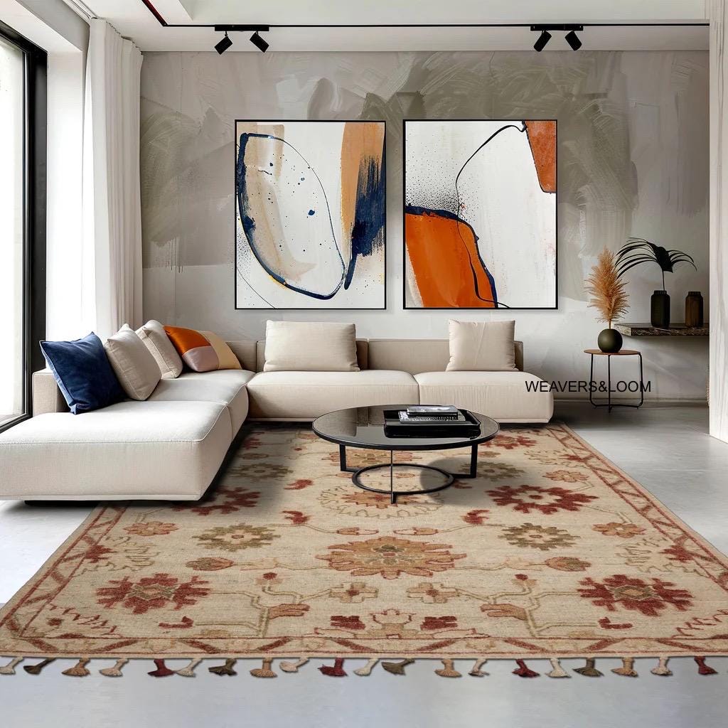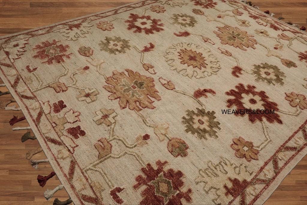 Beige Hand Knotted Wool Rug Sophisticated Oushak Transitional Look Area Rug in 8x10, 9x12, 10x14 Handmade Oushak rug