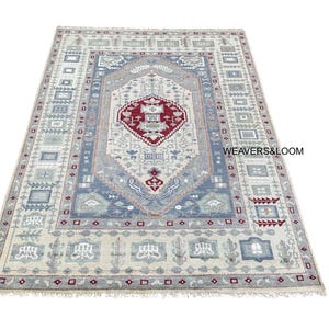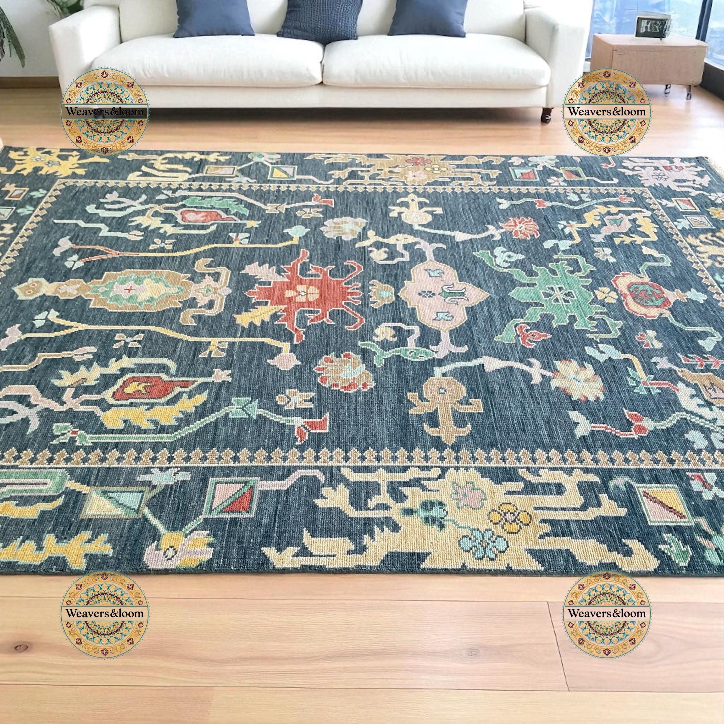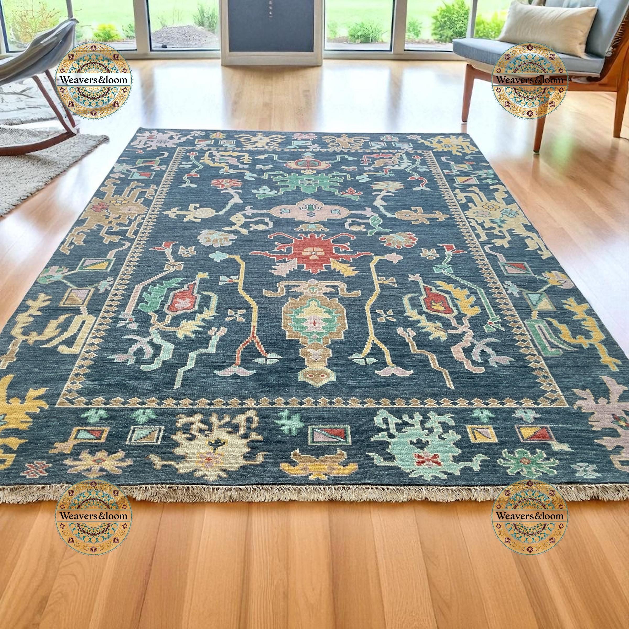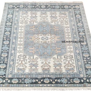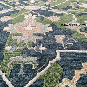 8x10 Blue Hand Knotted Oushak Rug, Ivory Wool Area Rug for Bedroom,Living room,dining area,Pastel Oushak Rug,Handmade Rug, Turkish rug