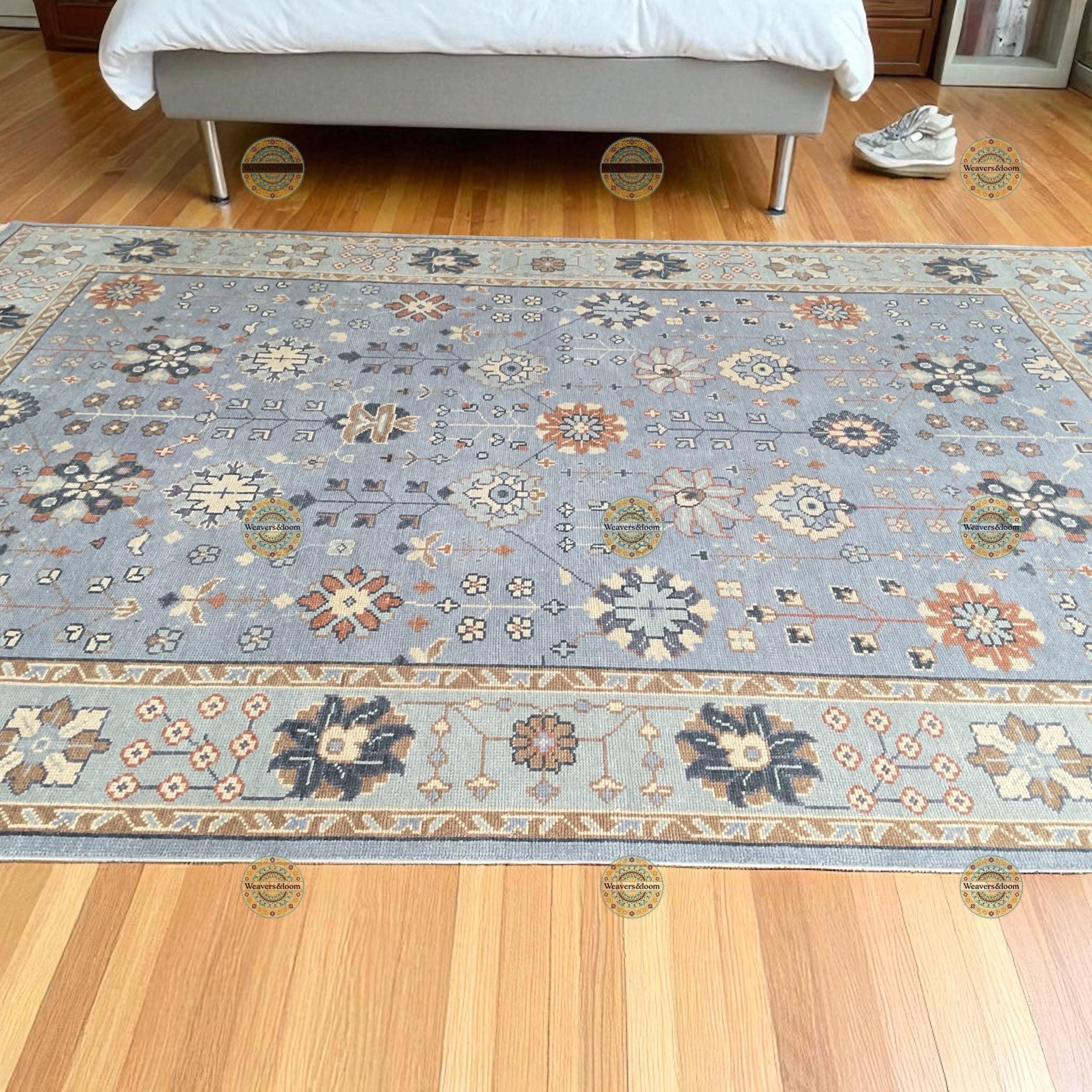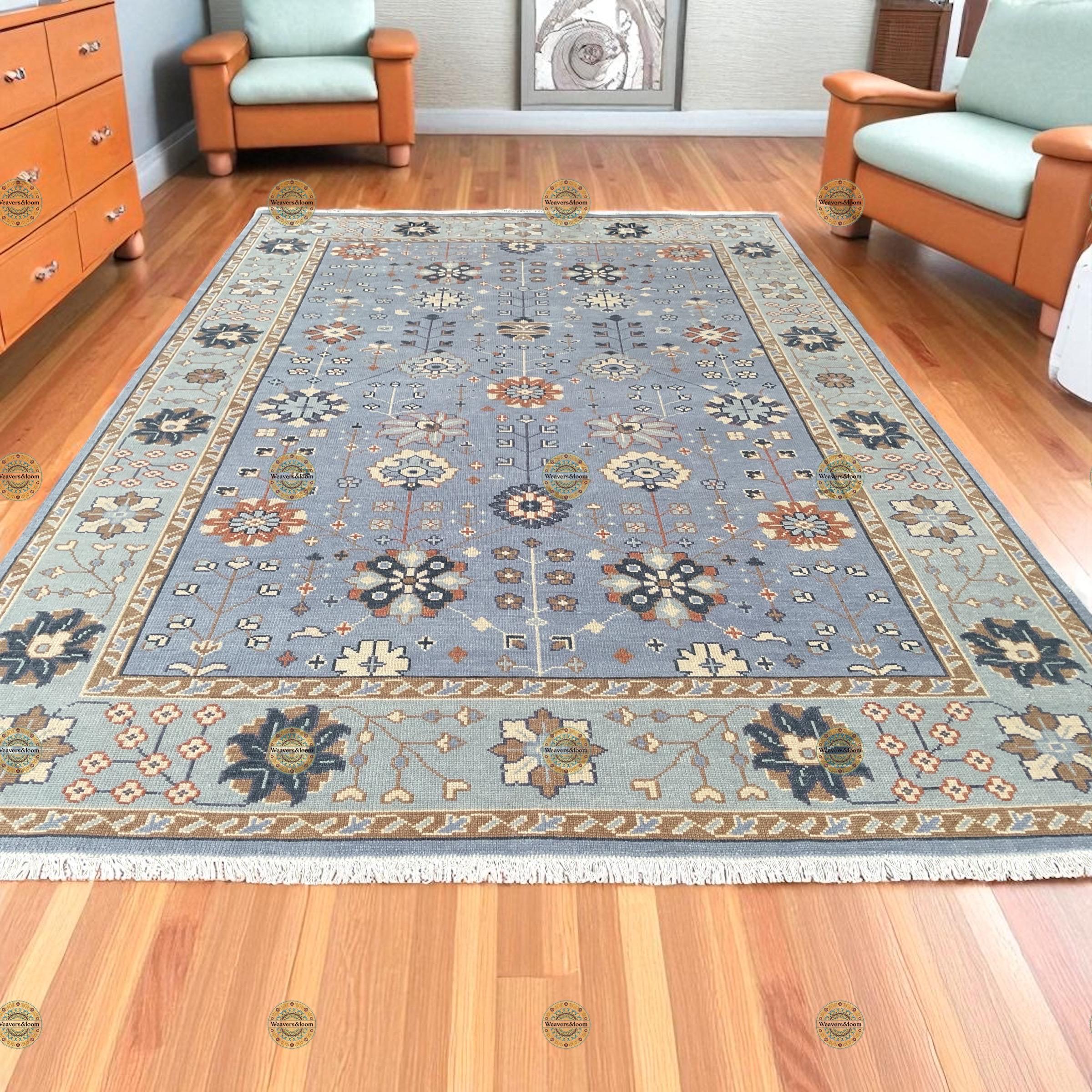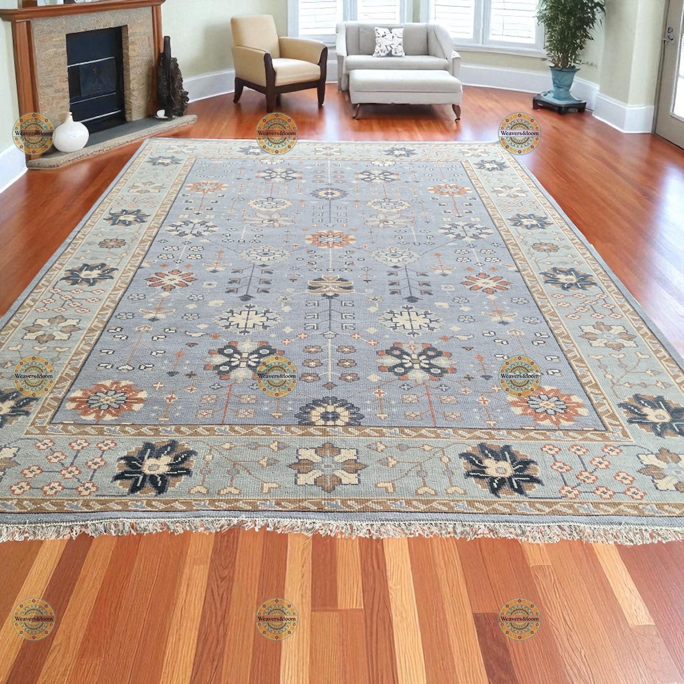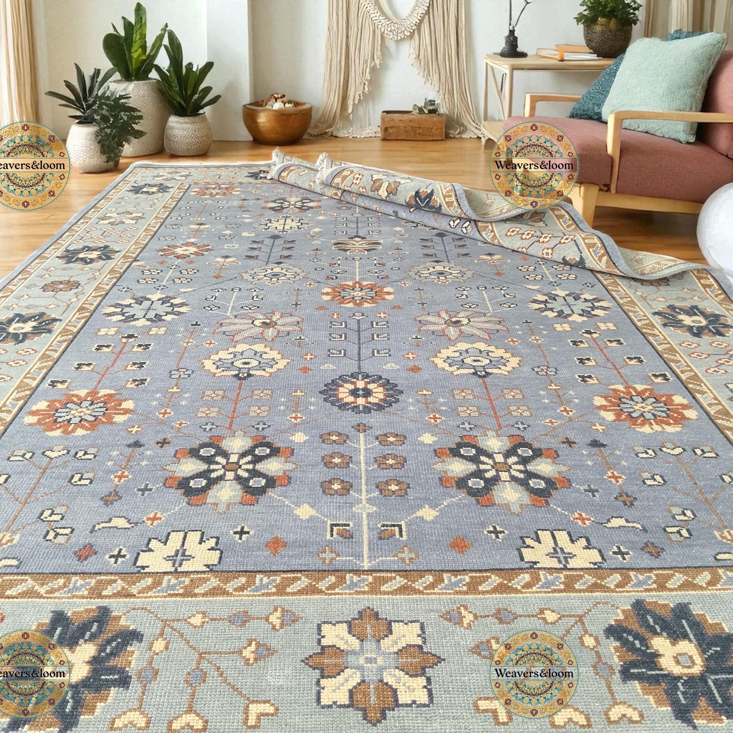 Serena Lily Hand Knotted Wool Rug, Gray-Rust Rug, Oushak Rug, Wool Area Rug for living room, bedroom, Dining area,Area Rug,Handmade Area Rug