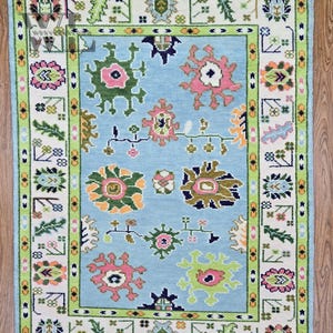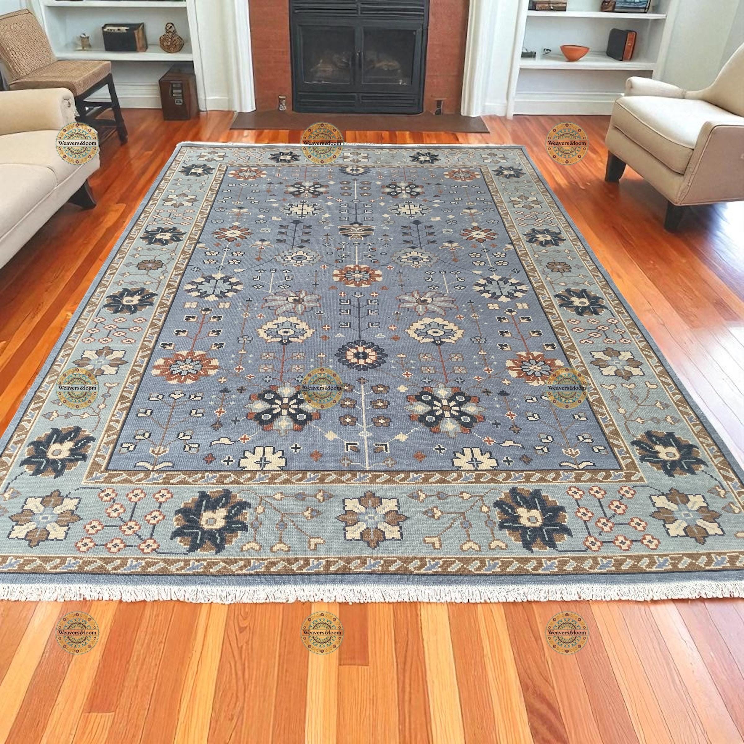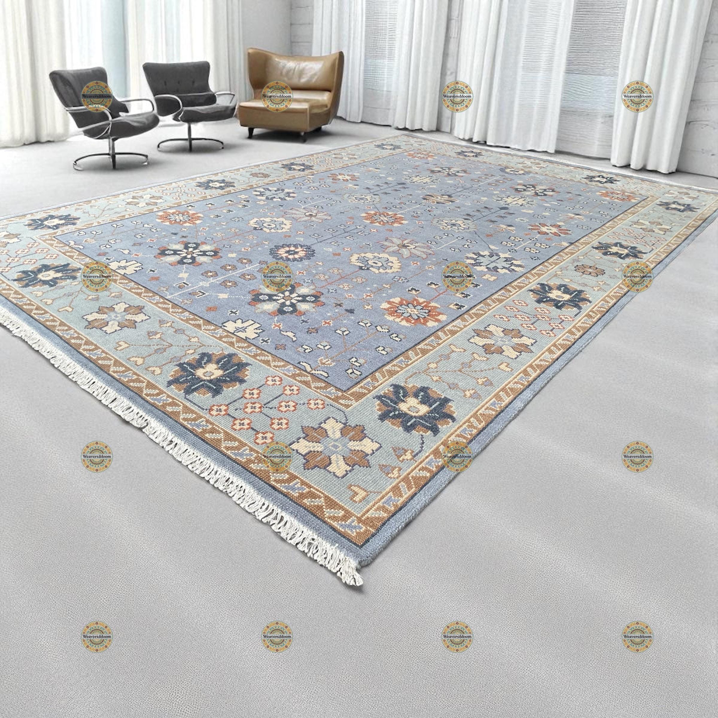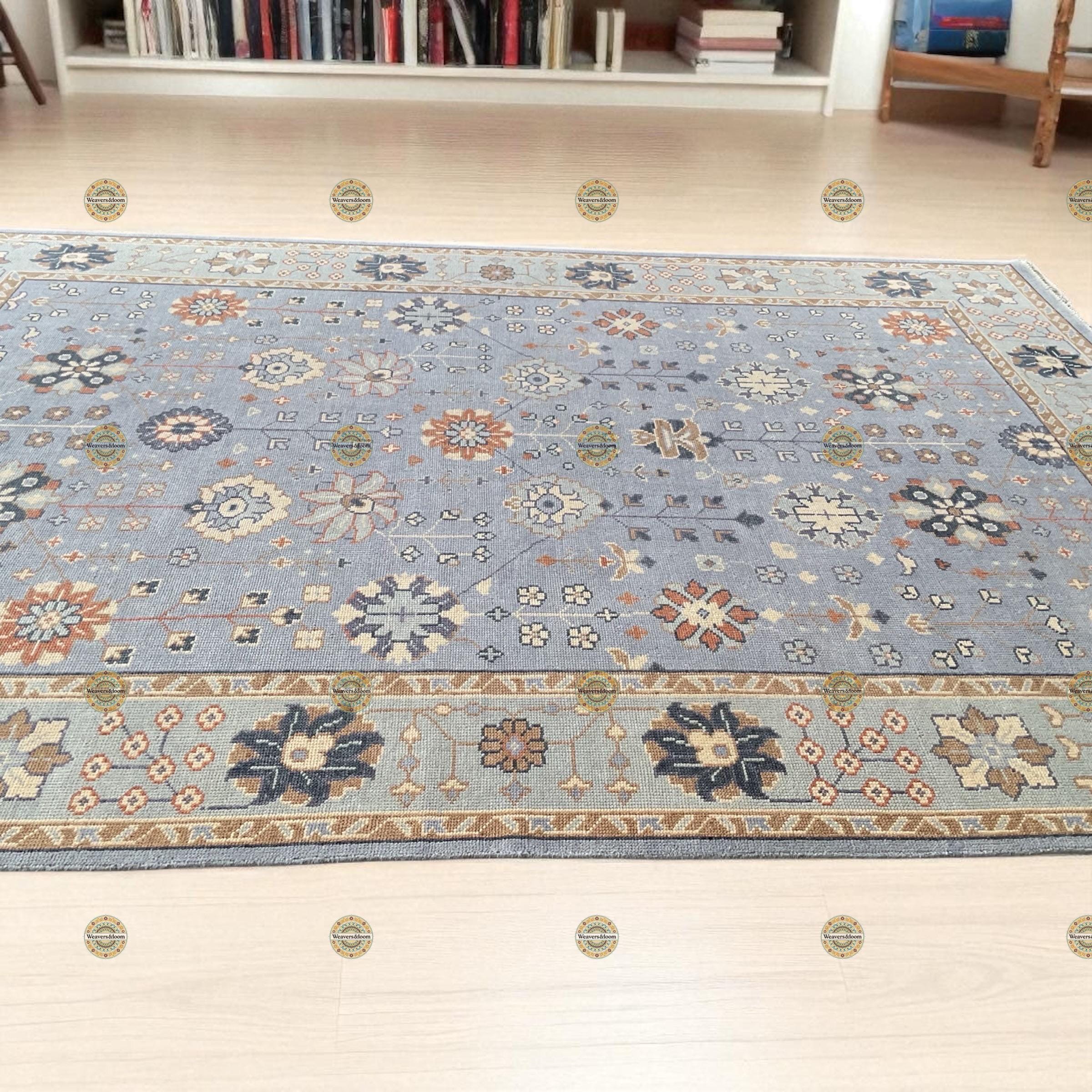 Serena Lily Hand Knotted Wool Rug, Gray-Rust Rug, Oushak Rug, Wool Area Rug for living room, bedroom, Dining area,Area Rug,Handmade Area Rug