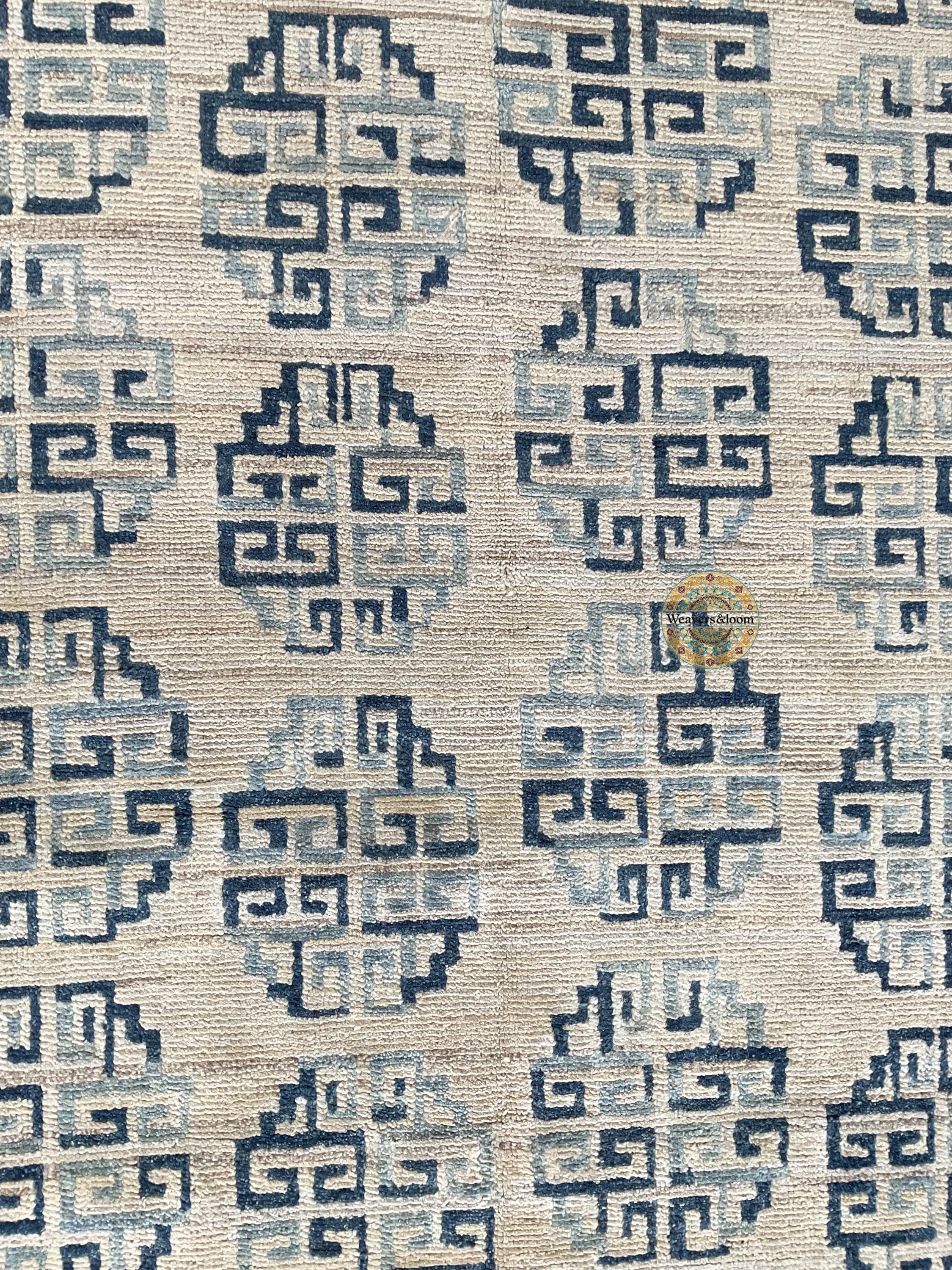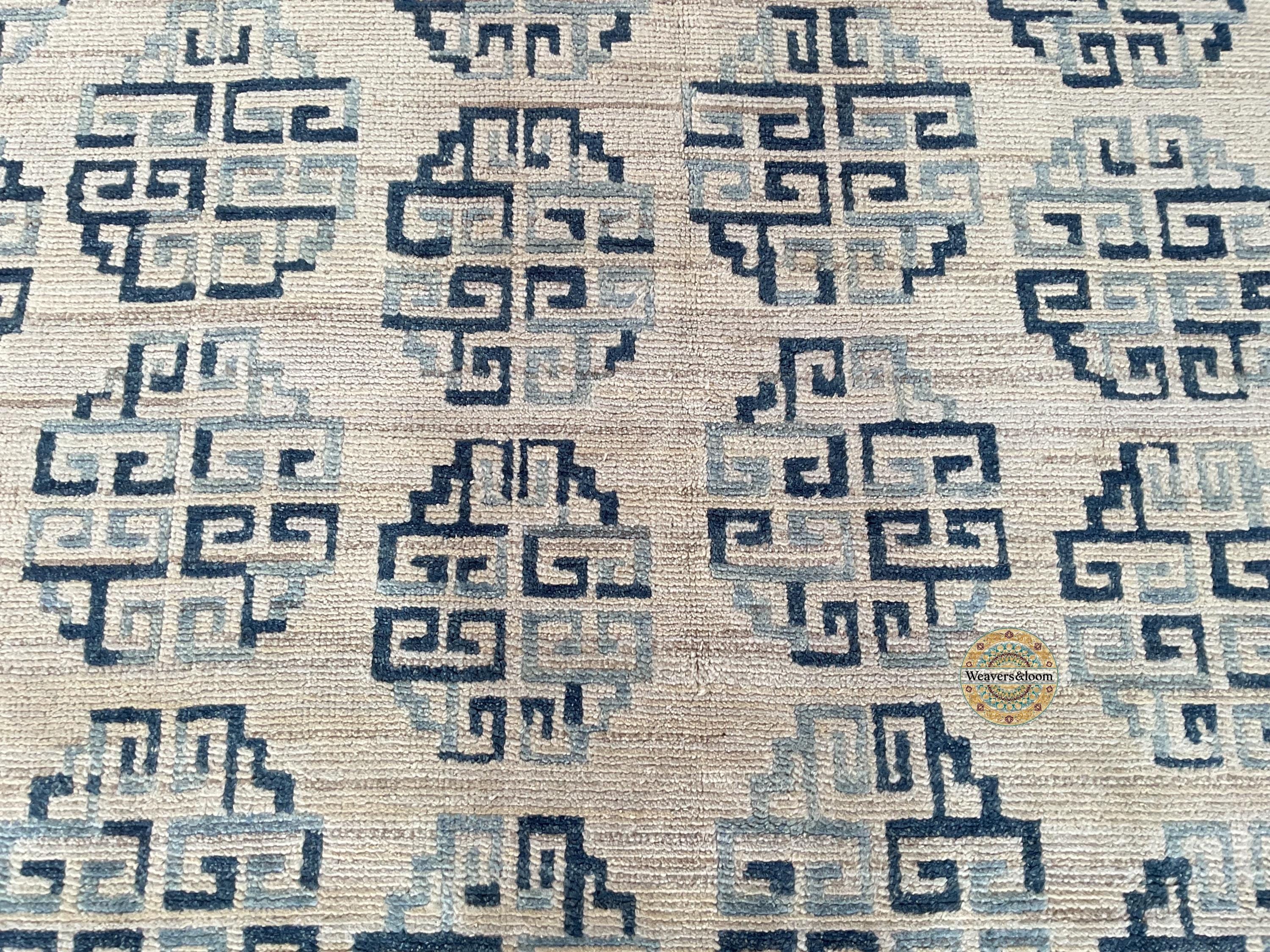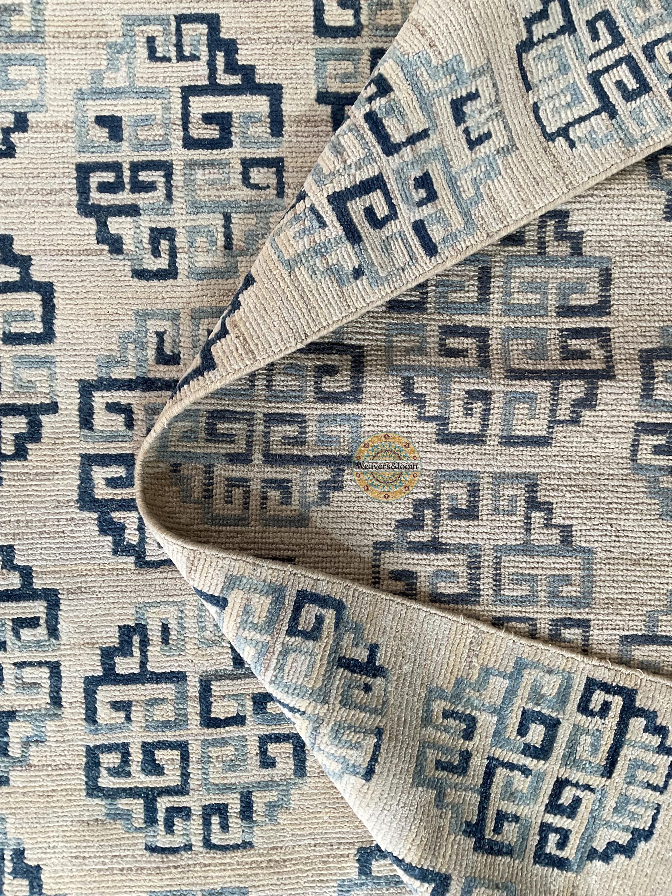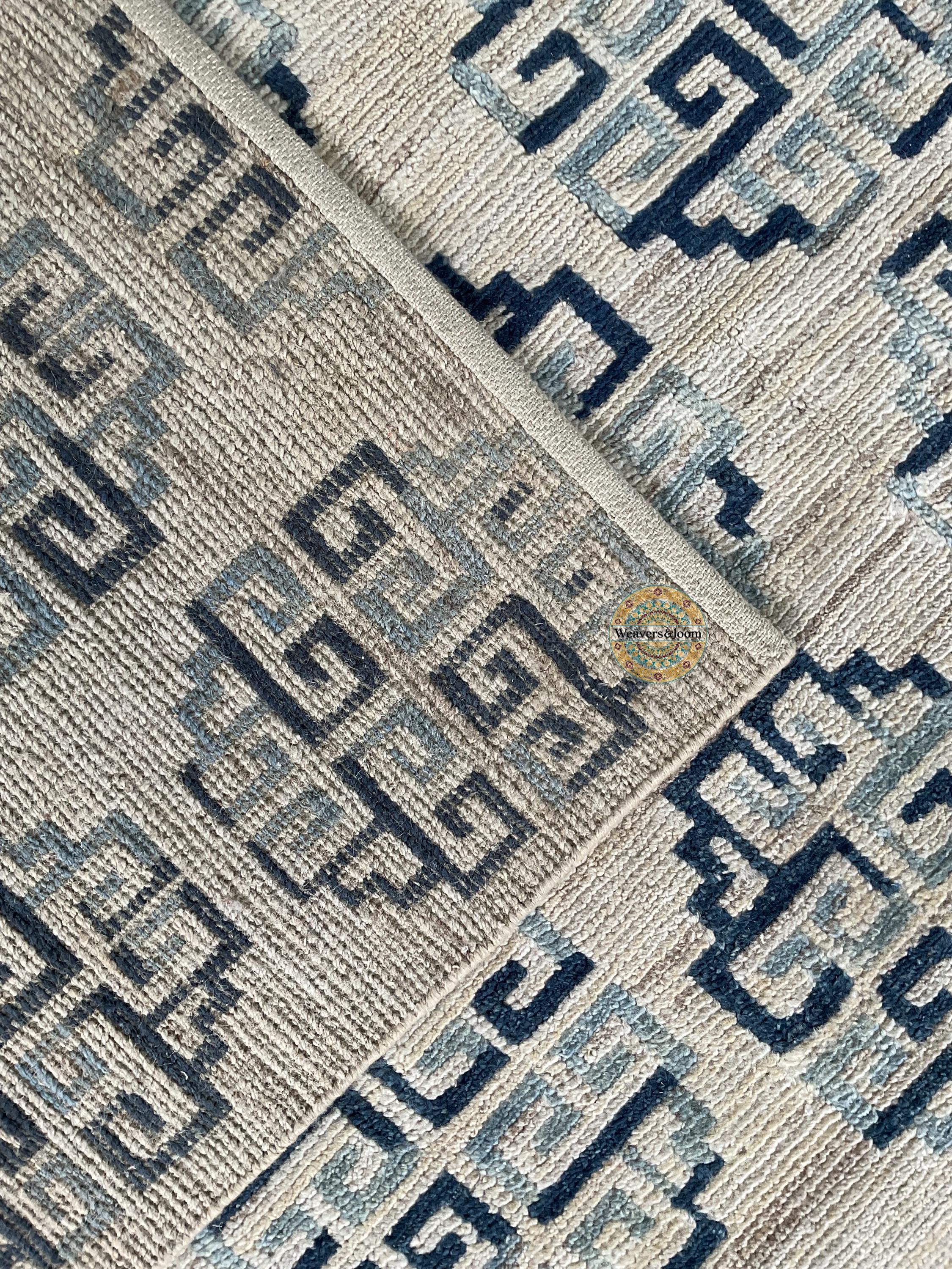 Modern Geometric Hand-Knotted Wool Rug,Handmade Rug Area Rug for Bedroom,Living Room,Dining Area,Office,Trending Wool Hand Knotted blue Rug