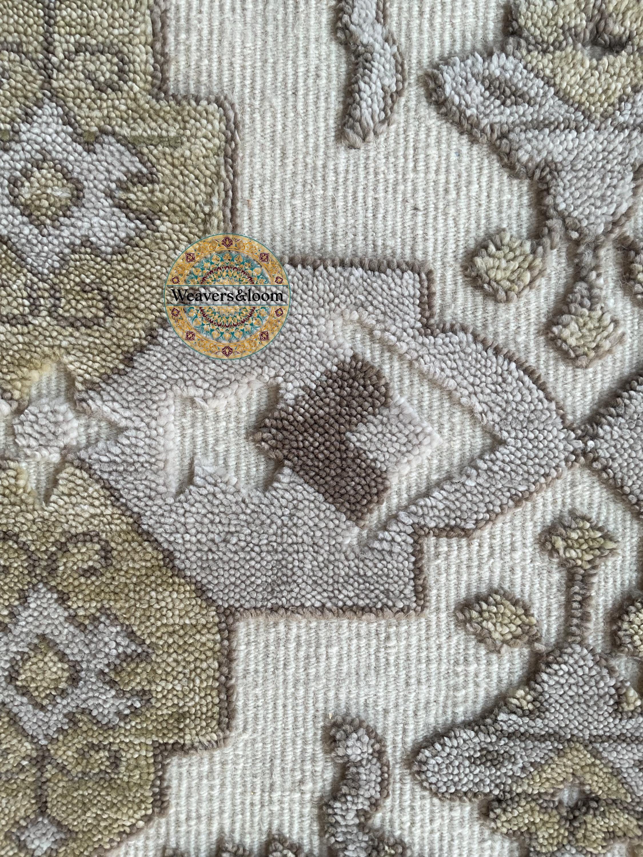 Handwoven Muted Wool Rug, Raised Hand Knotted Medallion Pattern, Boho Modern Rug